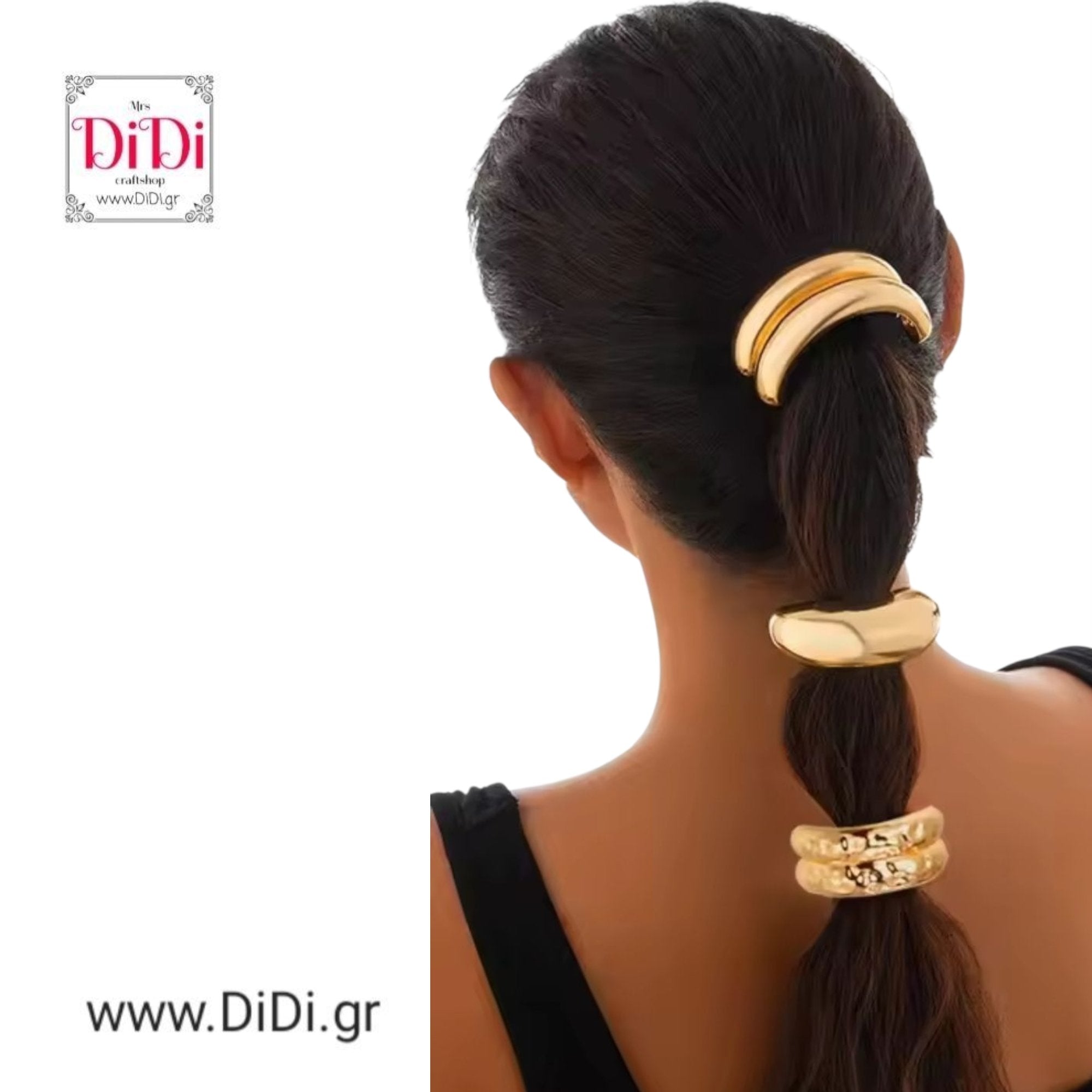 Λαστιχάκι μαλλιών με μεταλλική διακόσμηση, κιτρινο χρυσό, 1709253