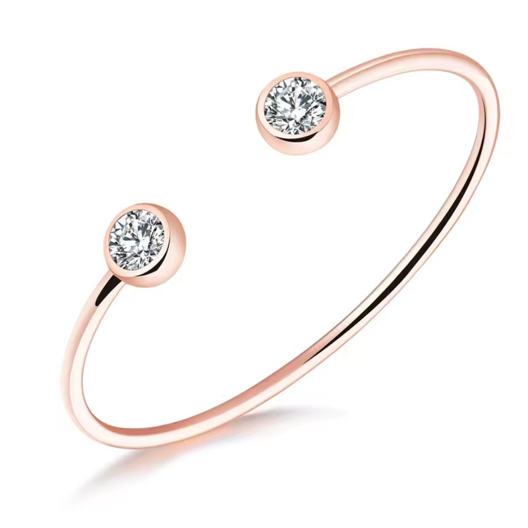Βραχιόλι ατσάλινο με 2 μπίλιες με στρας, σε ροζ χρυσό, 1405258R