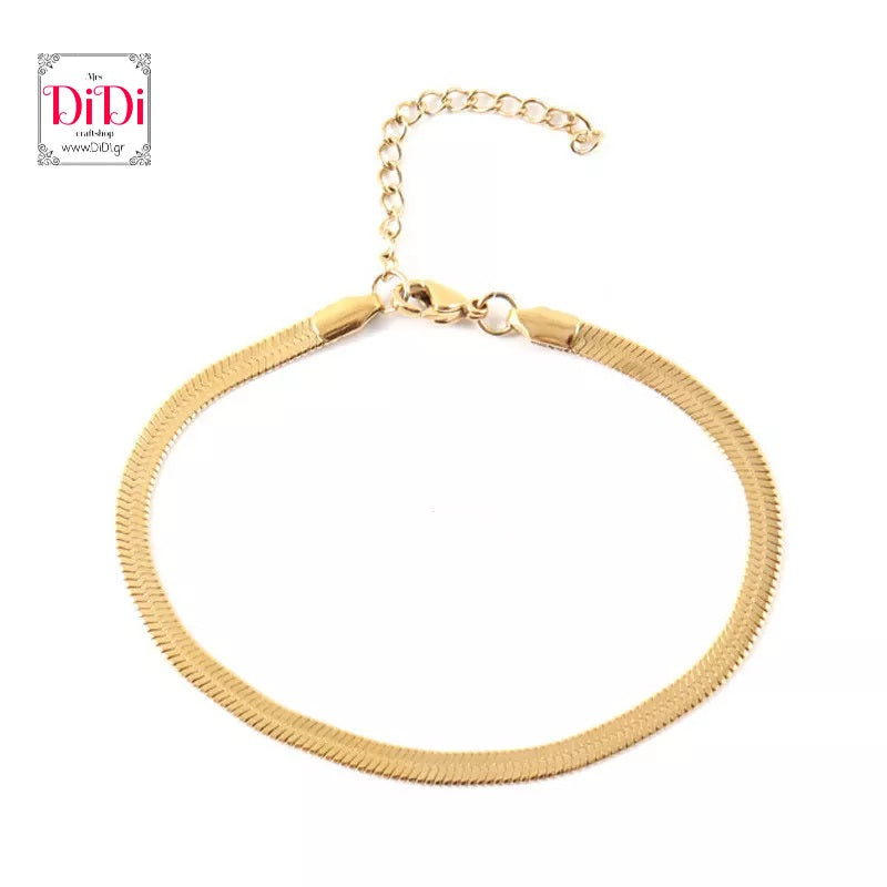 Βραχιόλι ποδιού ατσάλινο, φίδι 4mm, σε κίτρινο χρυσό, 0107243
