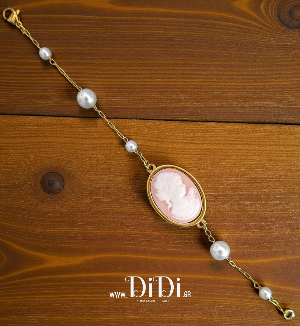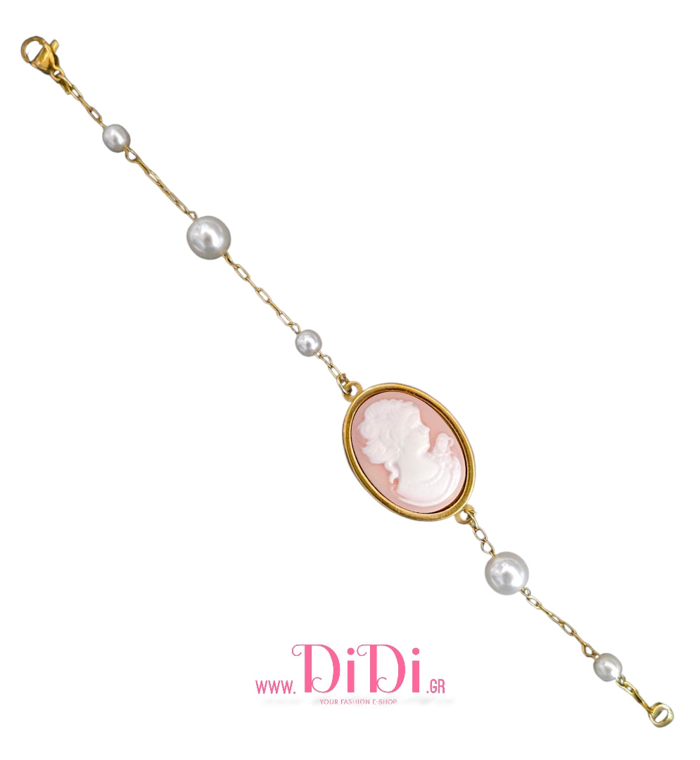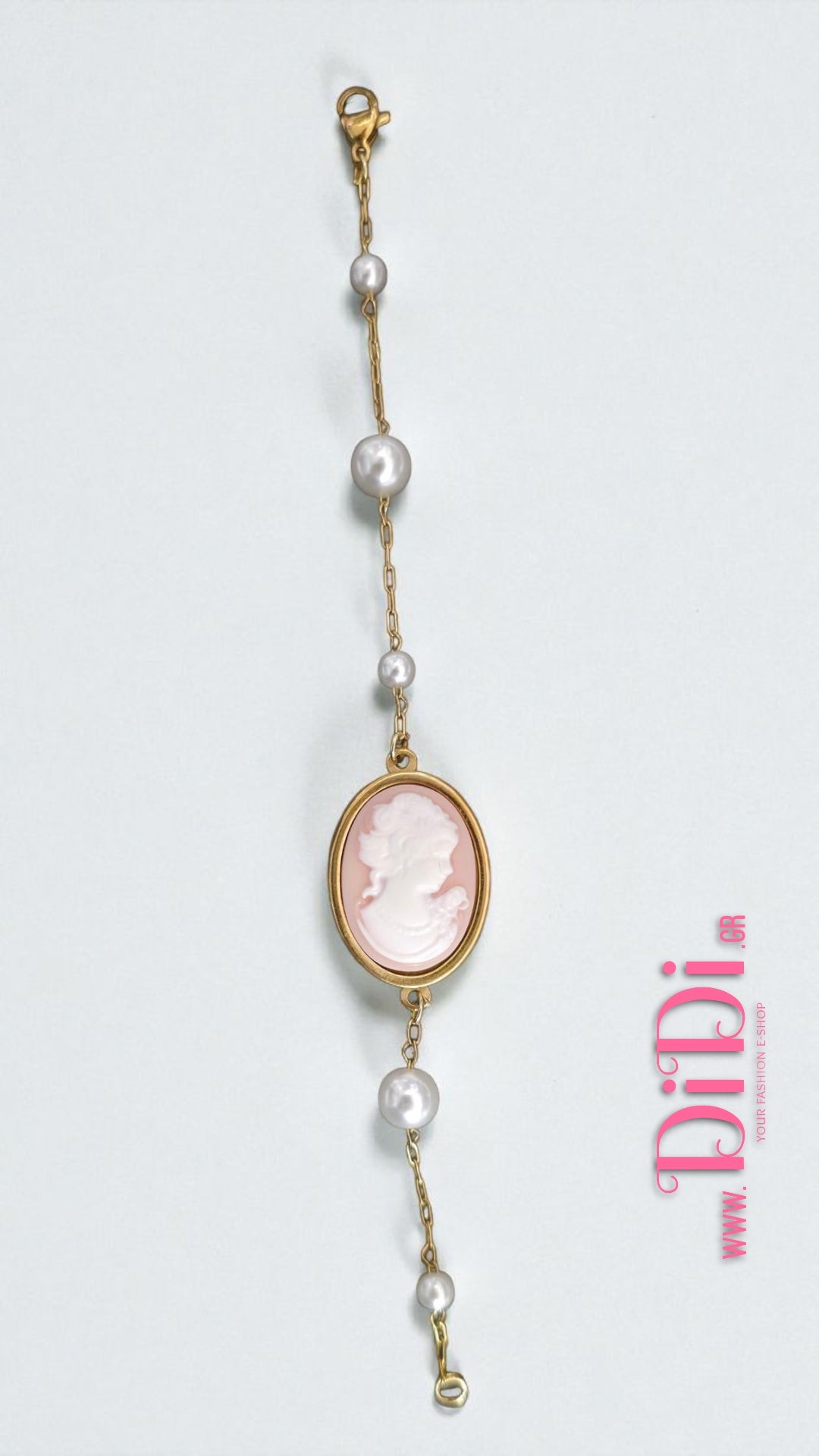 Βραχιόλι ατσάλινο Cameo ροζ 18mm x 25mm, με πέρλες, 1111257