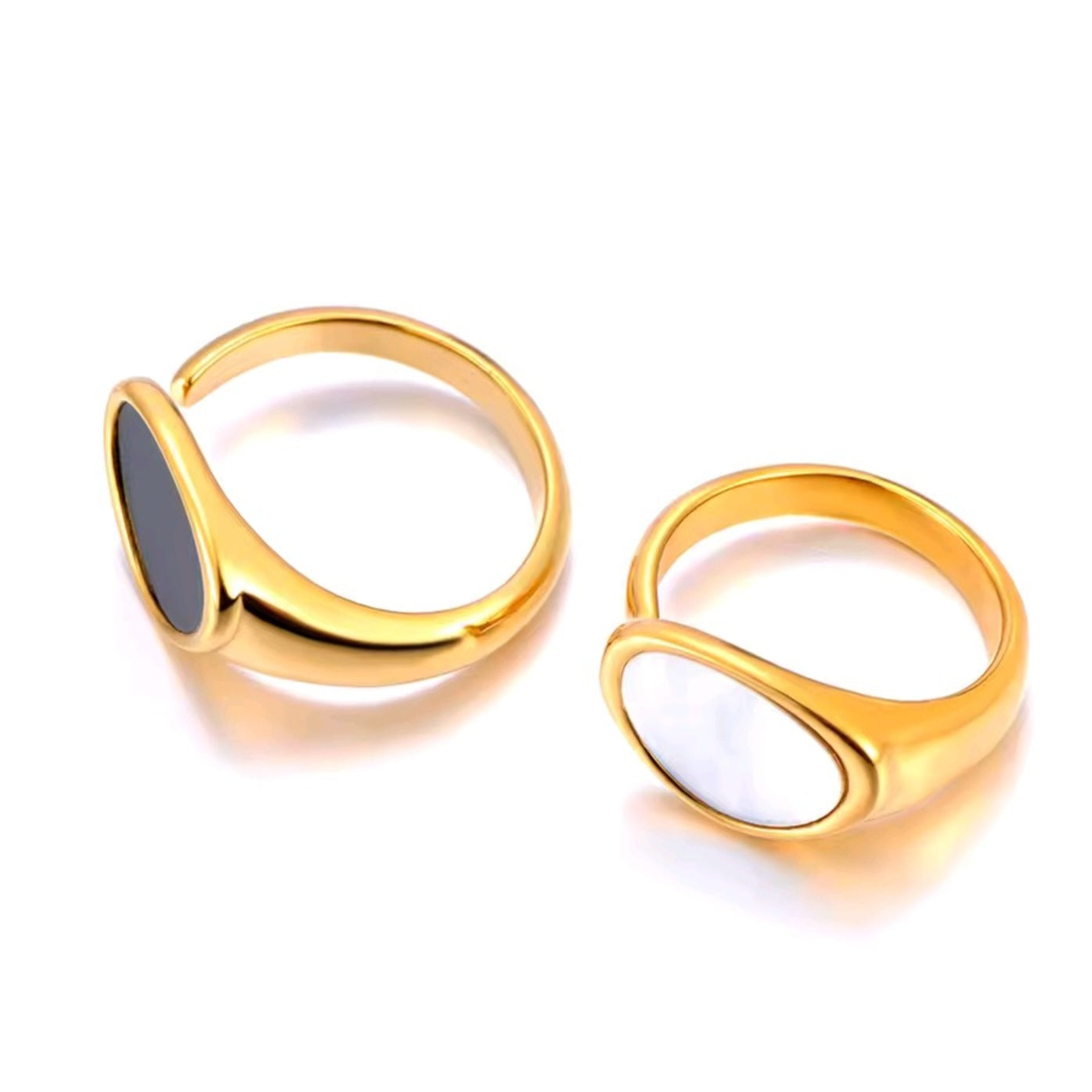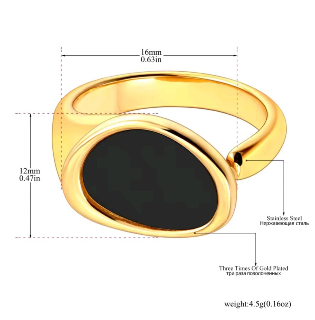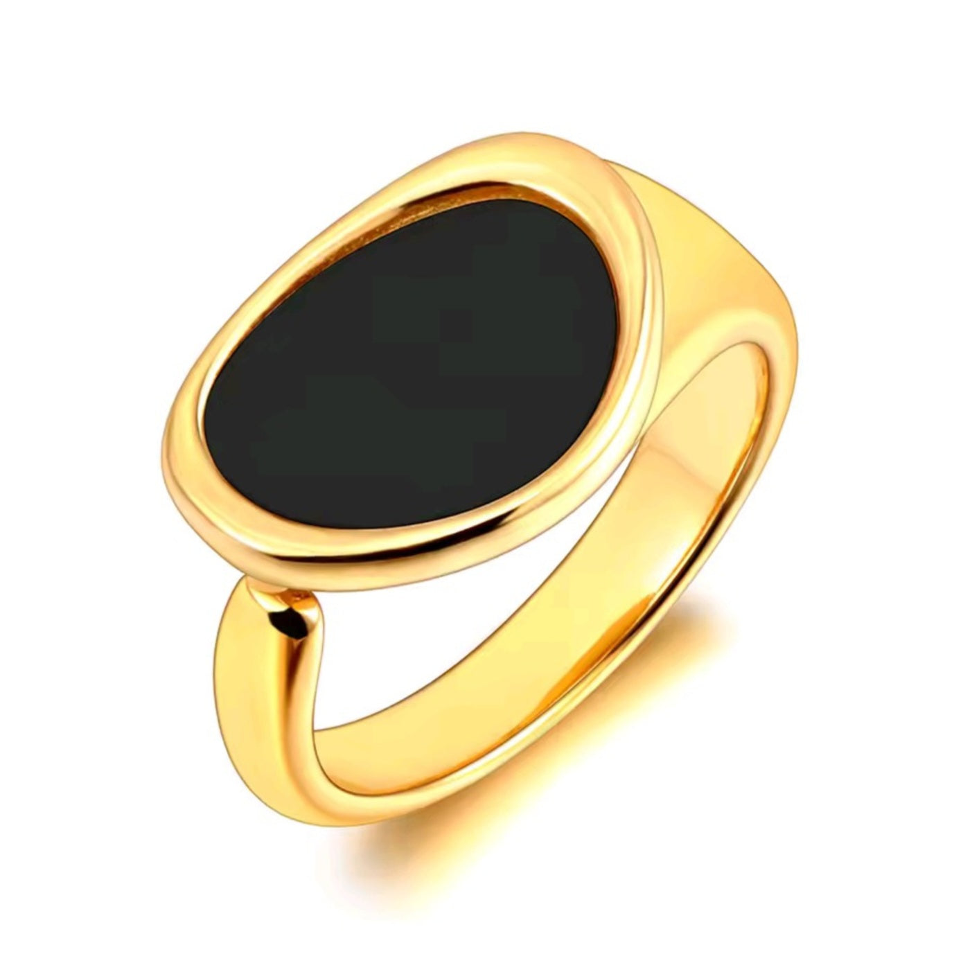 Δαχτυλίδι ατσάλινο με μαύρη πέτρα, σε κίτρινο χρυσό, 29082512