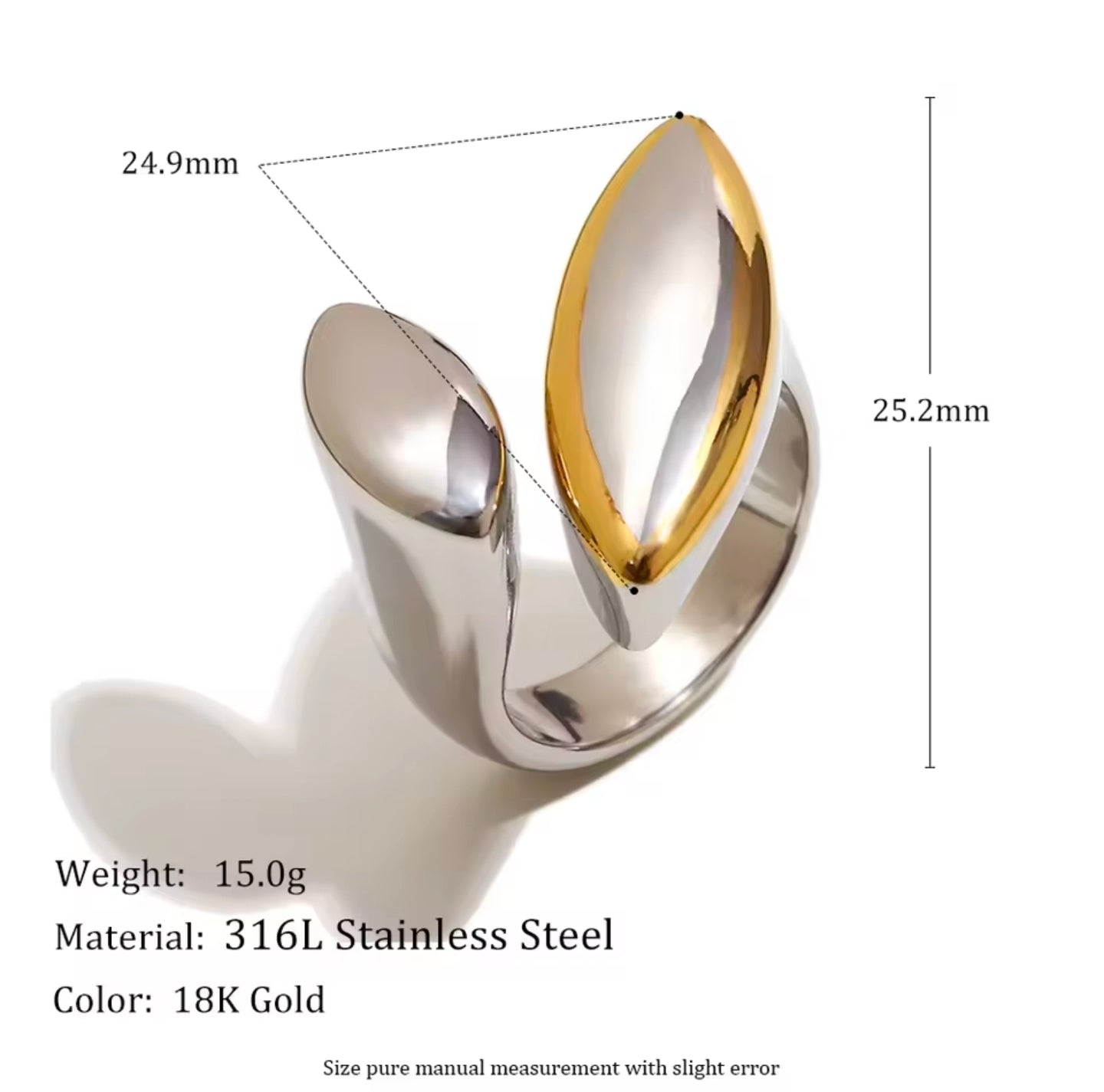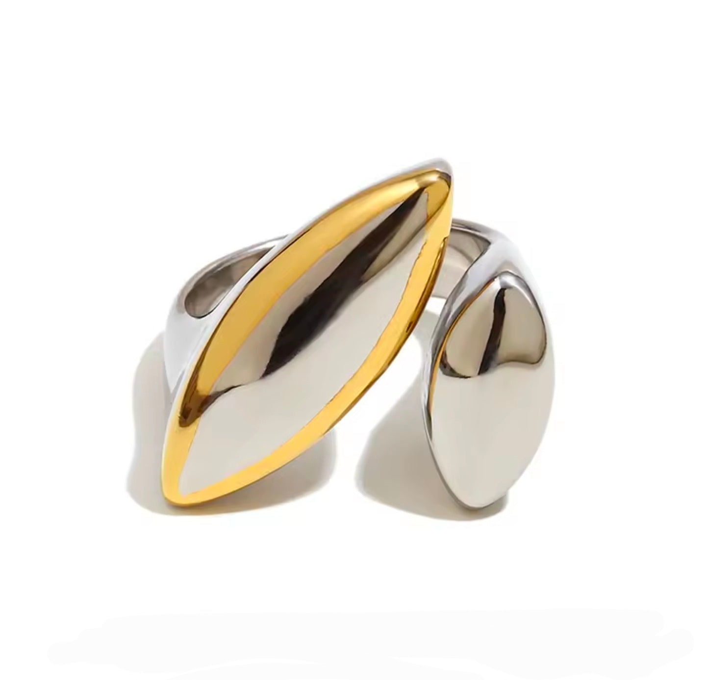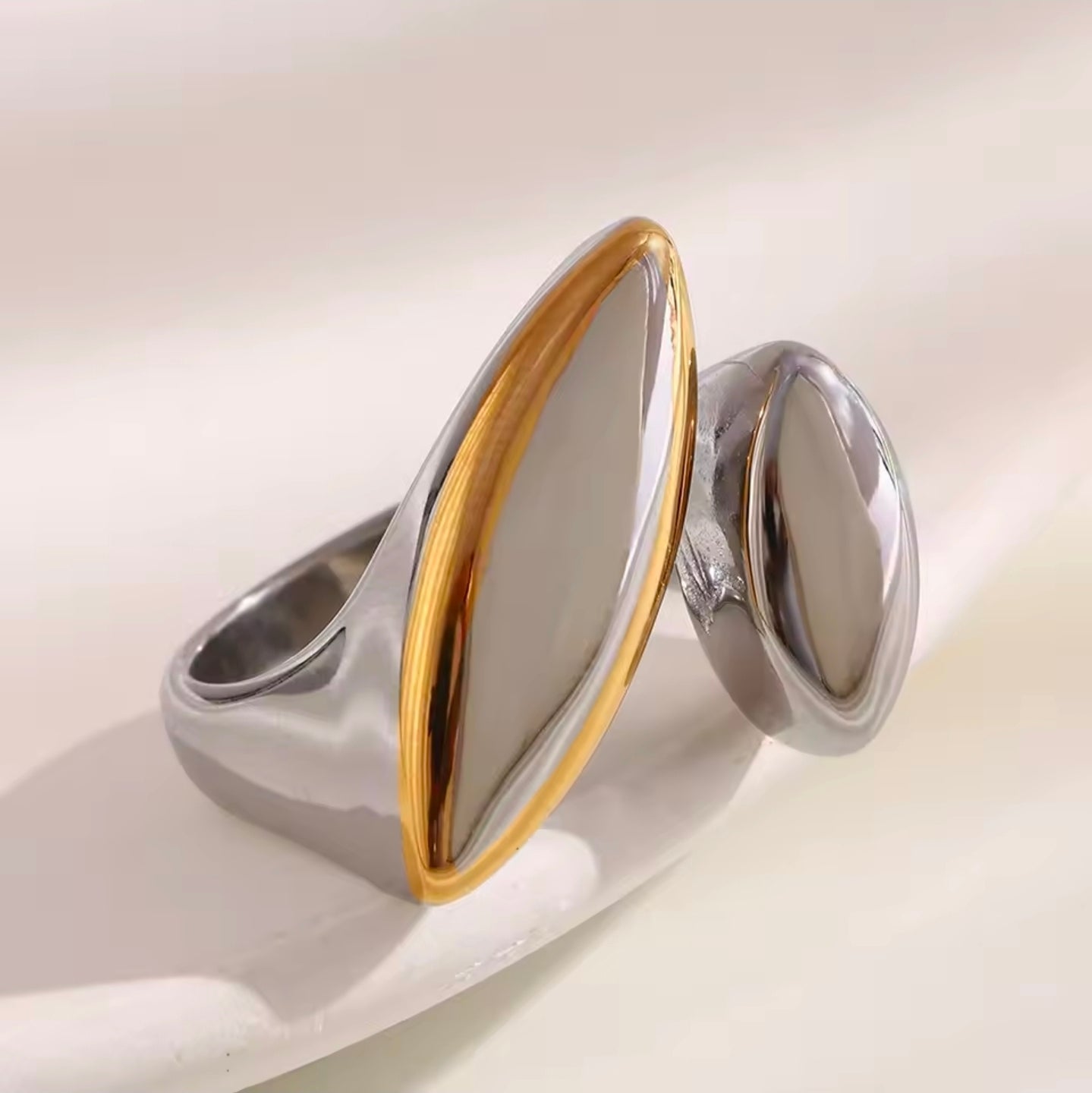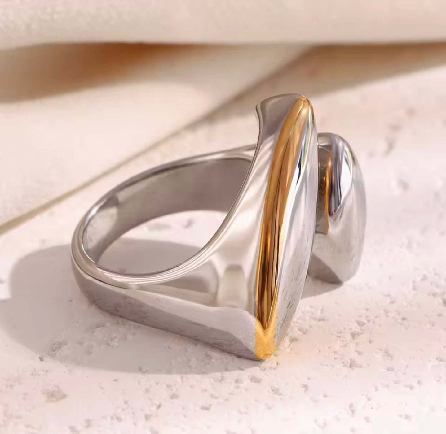Ατσάλινο δαχτυλίδι μεγάλο, δίχρωμο ασημί - χρυσό, 1911255