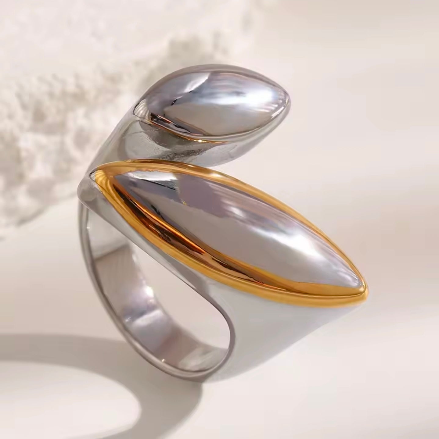 Μεγάλο δαχτυλίδι σε ασημί - κίτρινο χρυσό.