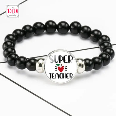 Βραχιόλι με ακρυλική πέρλα μαύρη και στοιχείο super teacher