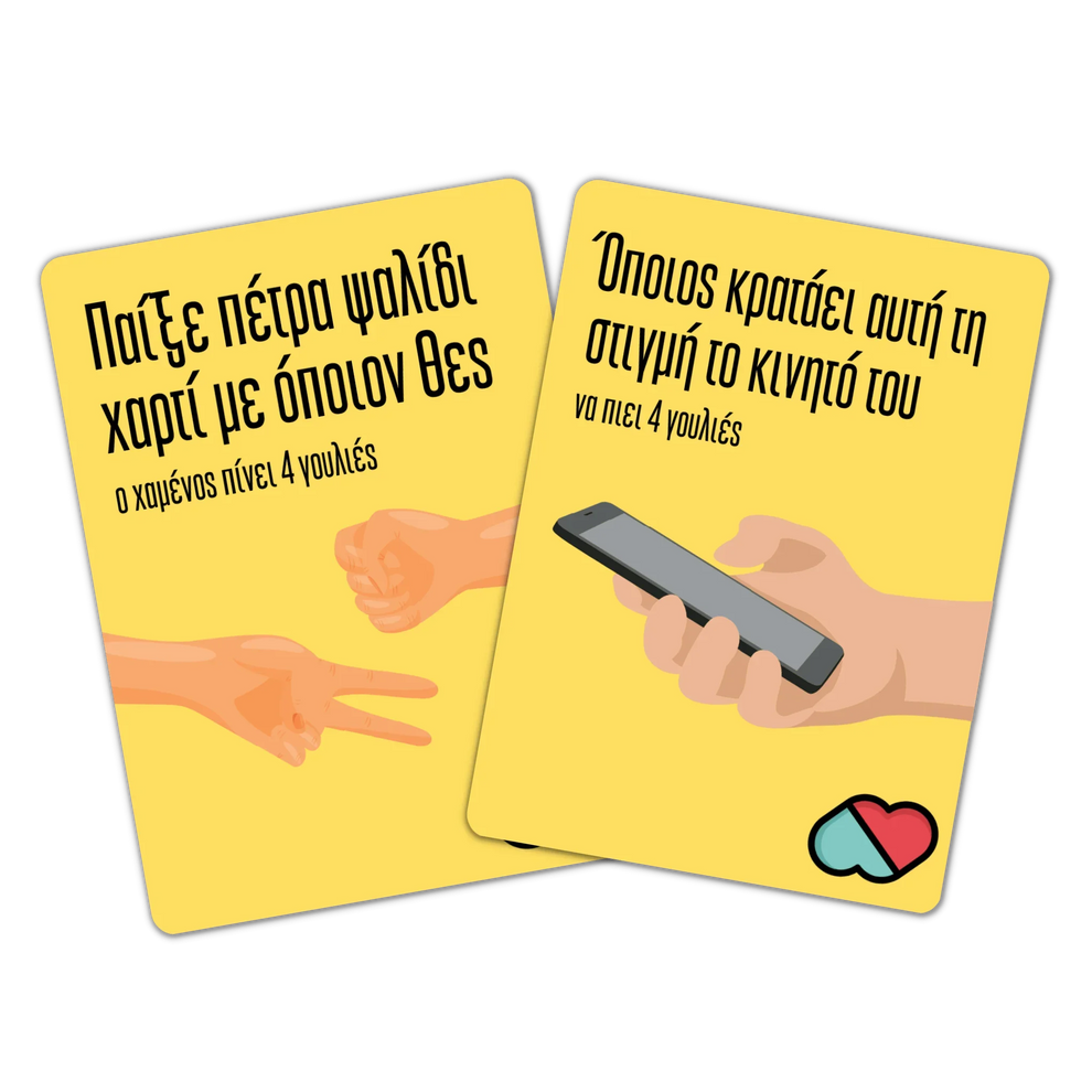 Απόδειξε σε όλους πόσο «γερό ποτήρι» είσαι ή κάνε ό,τι ορίζει η κάρτα που τράβηξες! Ένα παιχνίδι αυστηρά για ενήλικες – ιδανικό για ατελείωτο γέλιο και διασκεδαστικές βραδιές στο σπίτι.