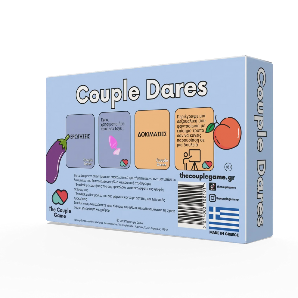 Το Couple Dares είναι ένα dating παιχνίδι με ερωτήσεις και δοκιμασίες που θα κάνουν τη σχέση ή το date σου να…πάρει φωτιά!