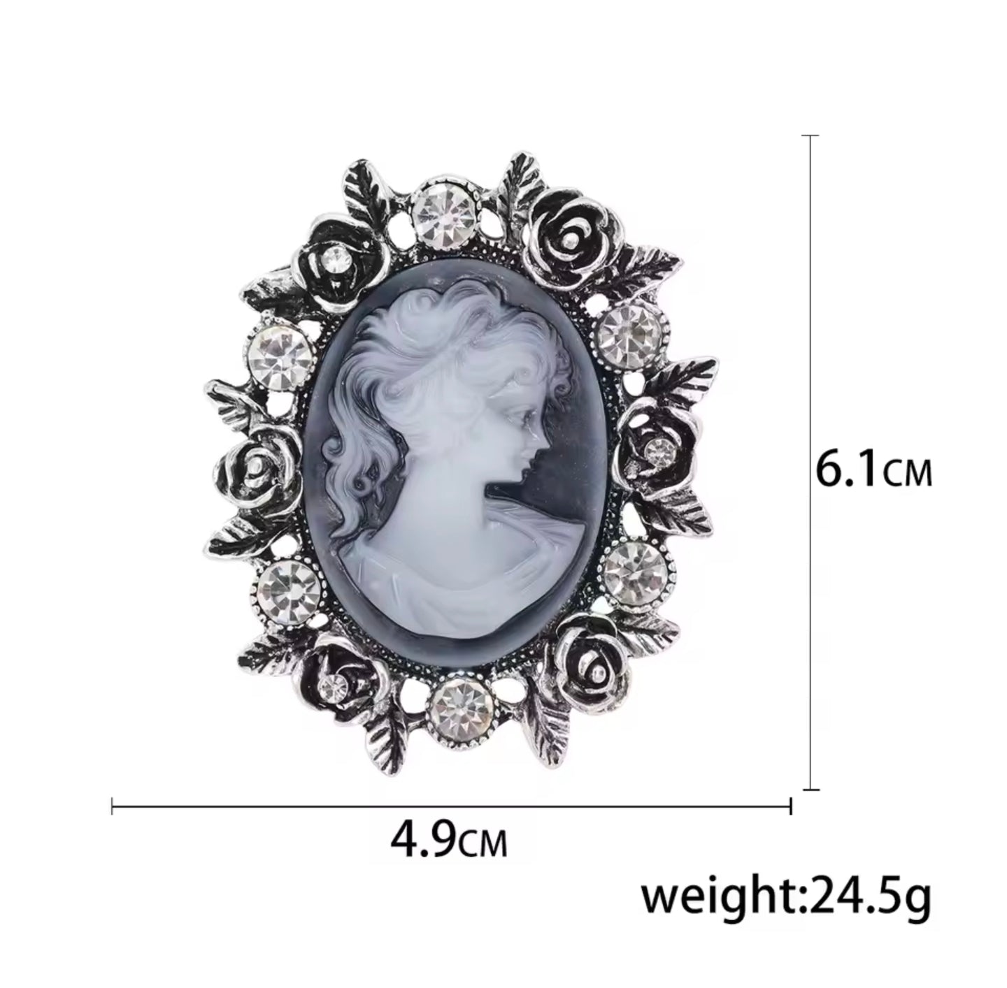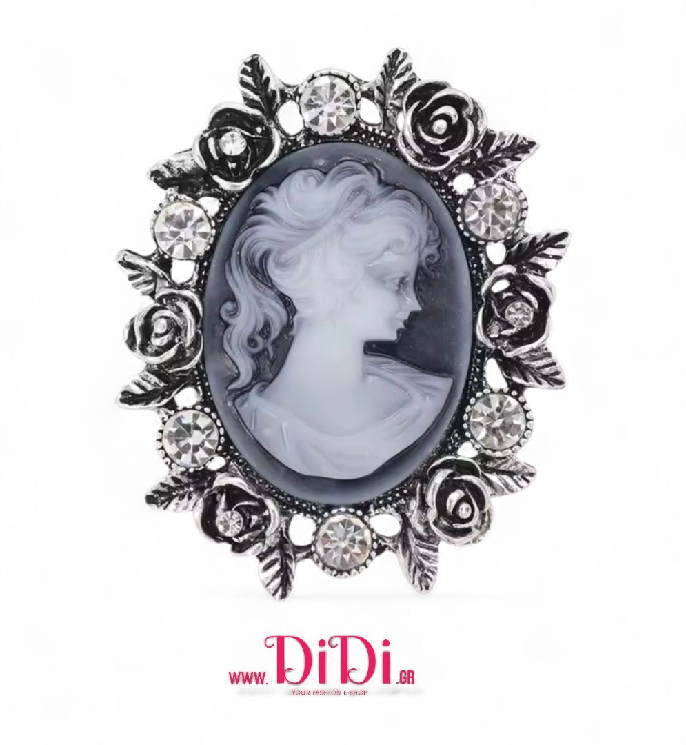 Καρφίτσα Καμέο (Cameo) ρετρό, ασημί με λευκές πέτρες, 2411256