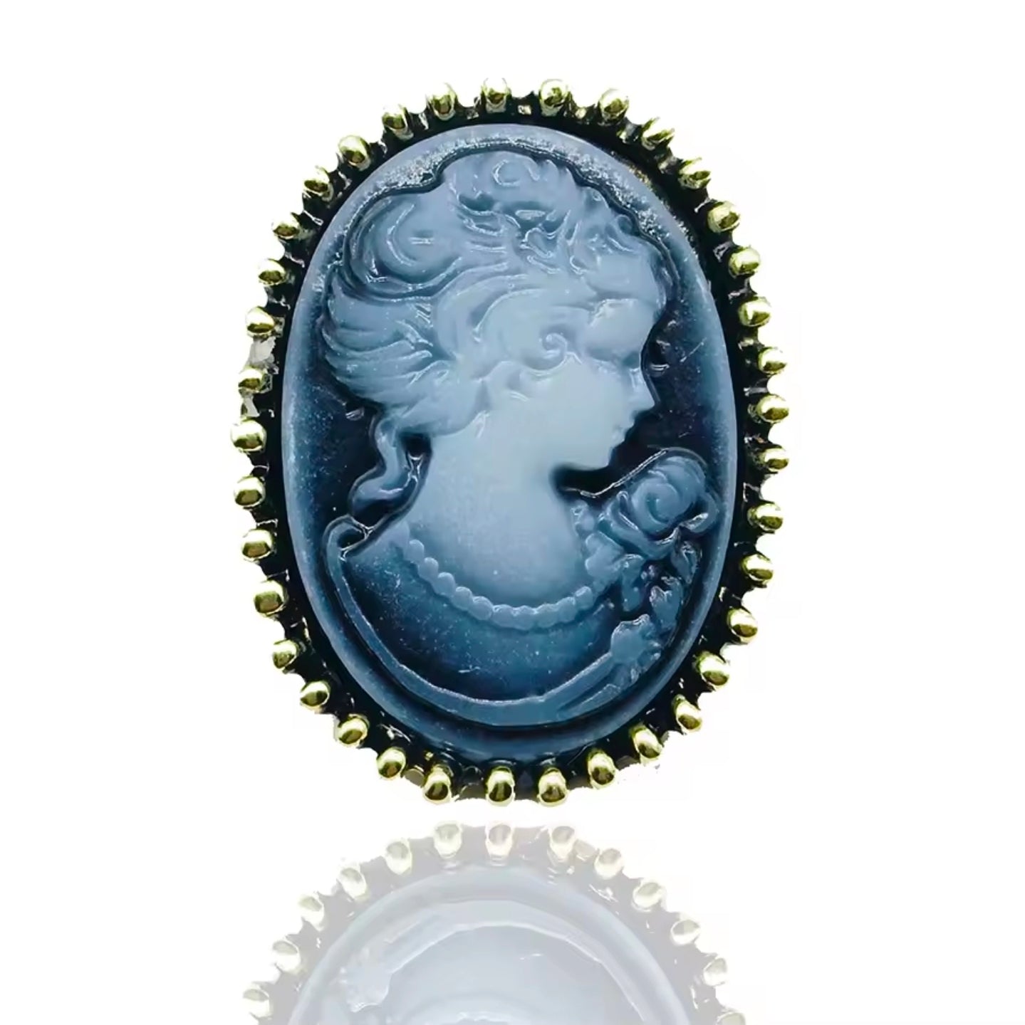Καρφίτσα καμέο (Cameo) ρετρό, μίνιμαλ, γκρι, σε χρυσό αντικέ, 2110255