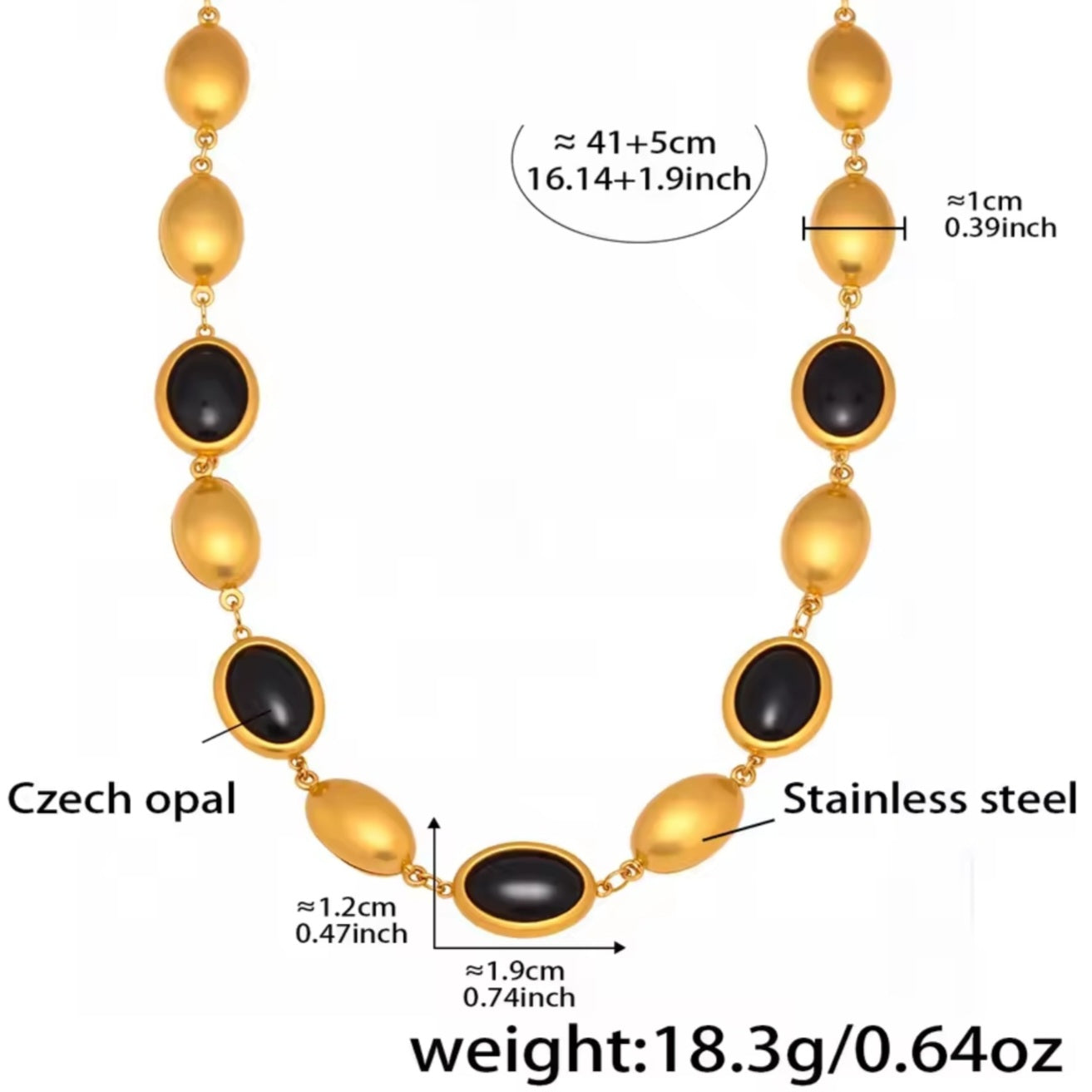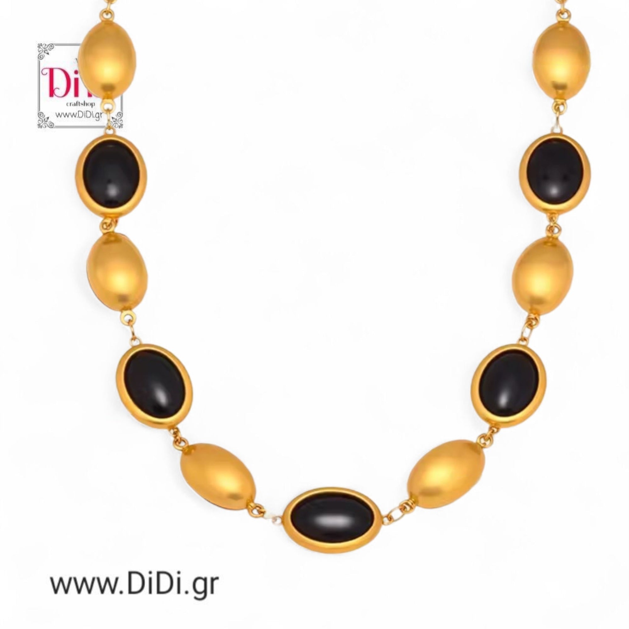 Ατσάλινο κολιέ μεγάλο, με μαυρες πέτρες Τσεχίας, σε κίτρινο χρυσό, 01102512