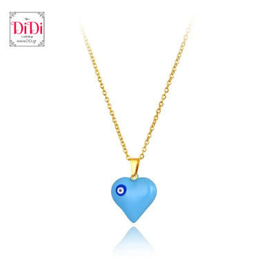 Ατσάλινο κολιέ με επισμαλτωμενη, γαλάζια καρδιά με ματάκι, σε κίτρινο χρυσό, 0407252