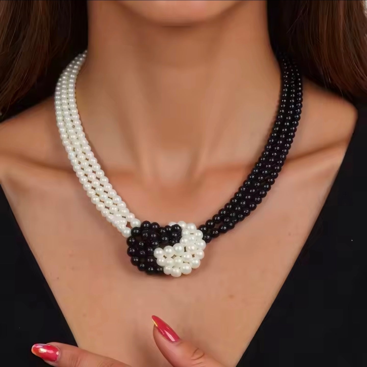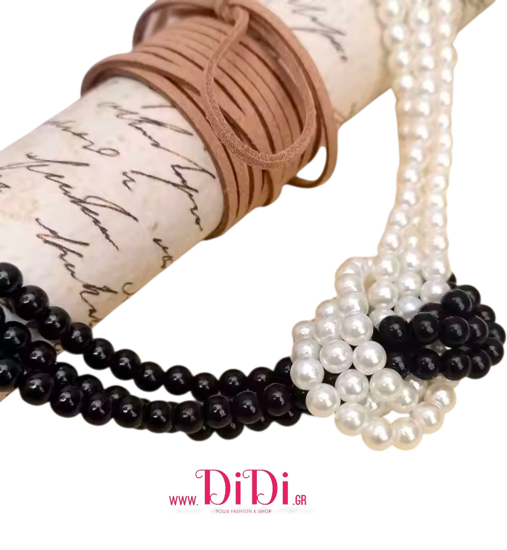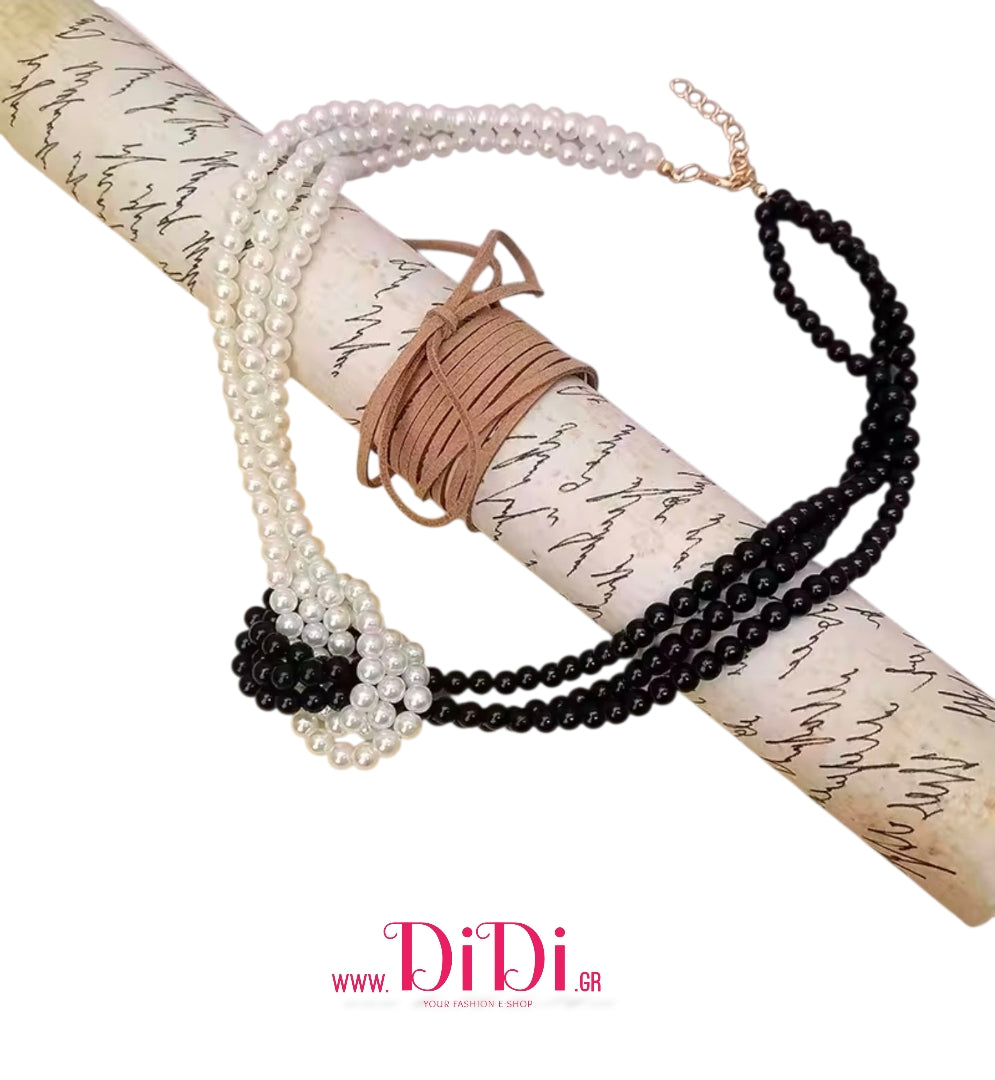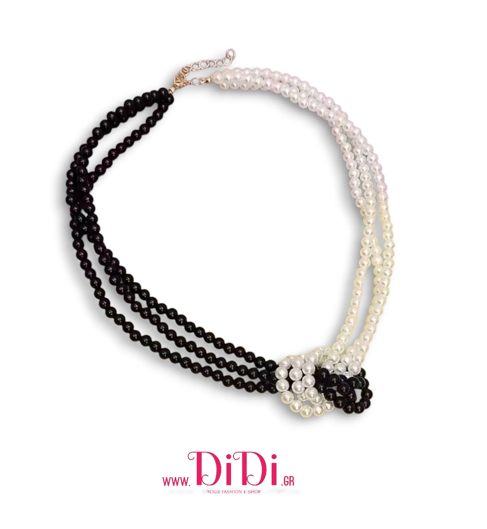 Κολιέ με πέρλες άσπρο- μαύρο 6mm, σε κίτρινο χρυσό, 1911251