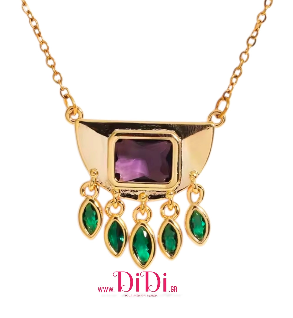 Κολιε ατσάλινο boho, χρωματιστά ζιργκόν, σε κίτρινο χρυσό, 1701268G
