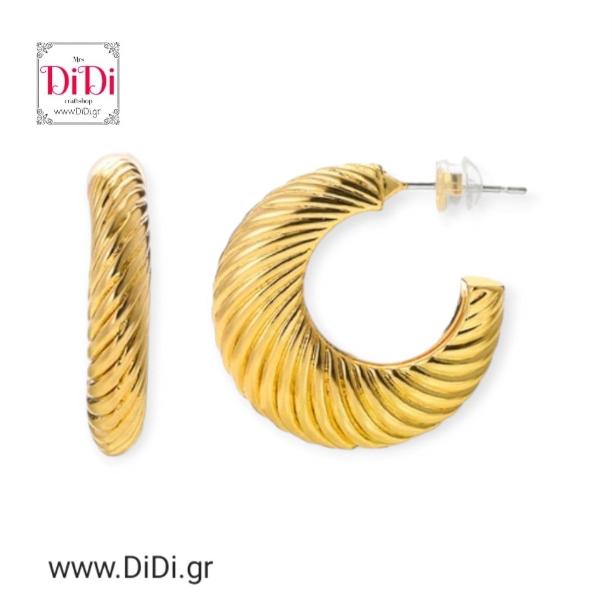 Σκουλαρίκια κρίκοι ατσάλινοι 2,7cm, σε κίτρινο χρυσό, 2307249G