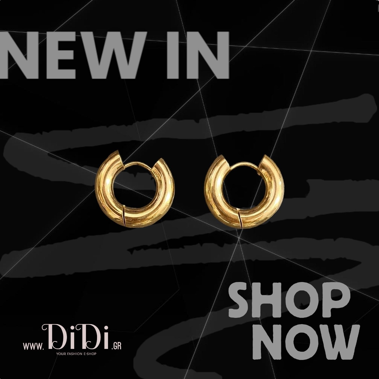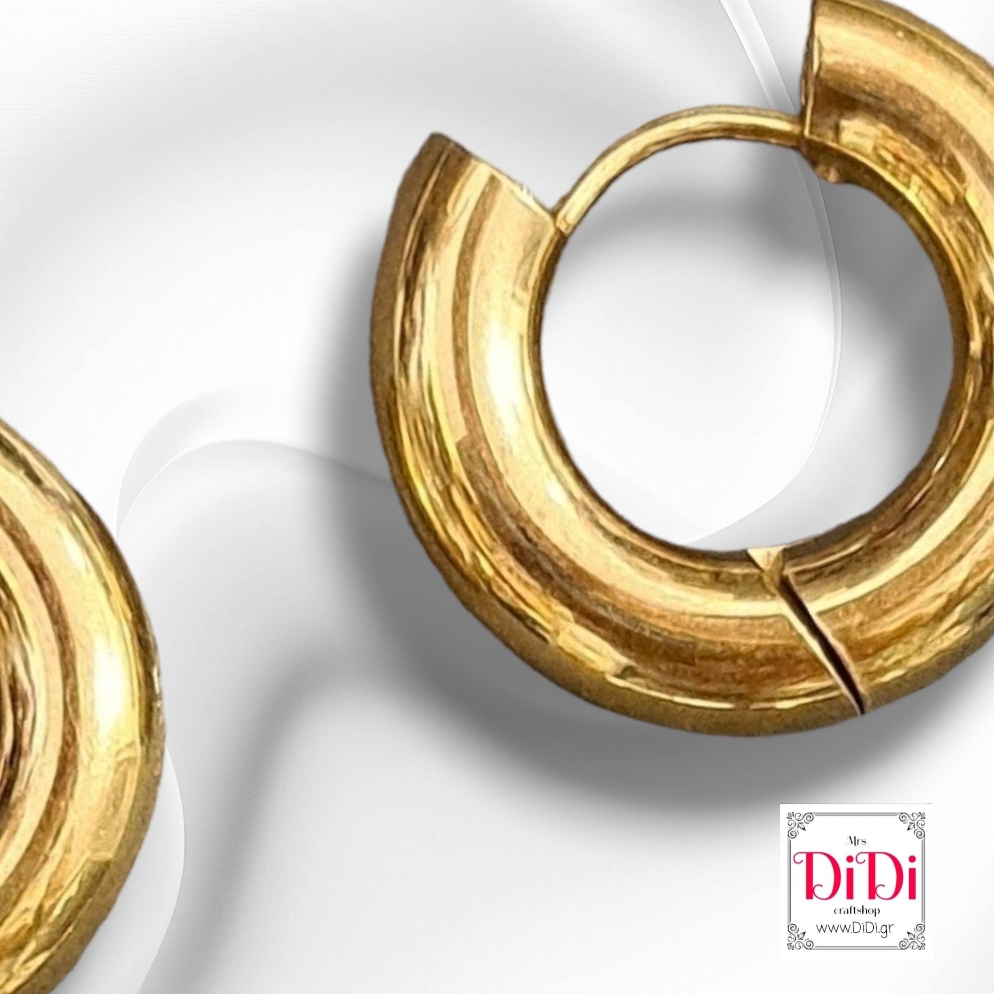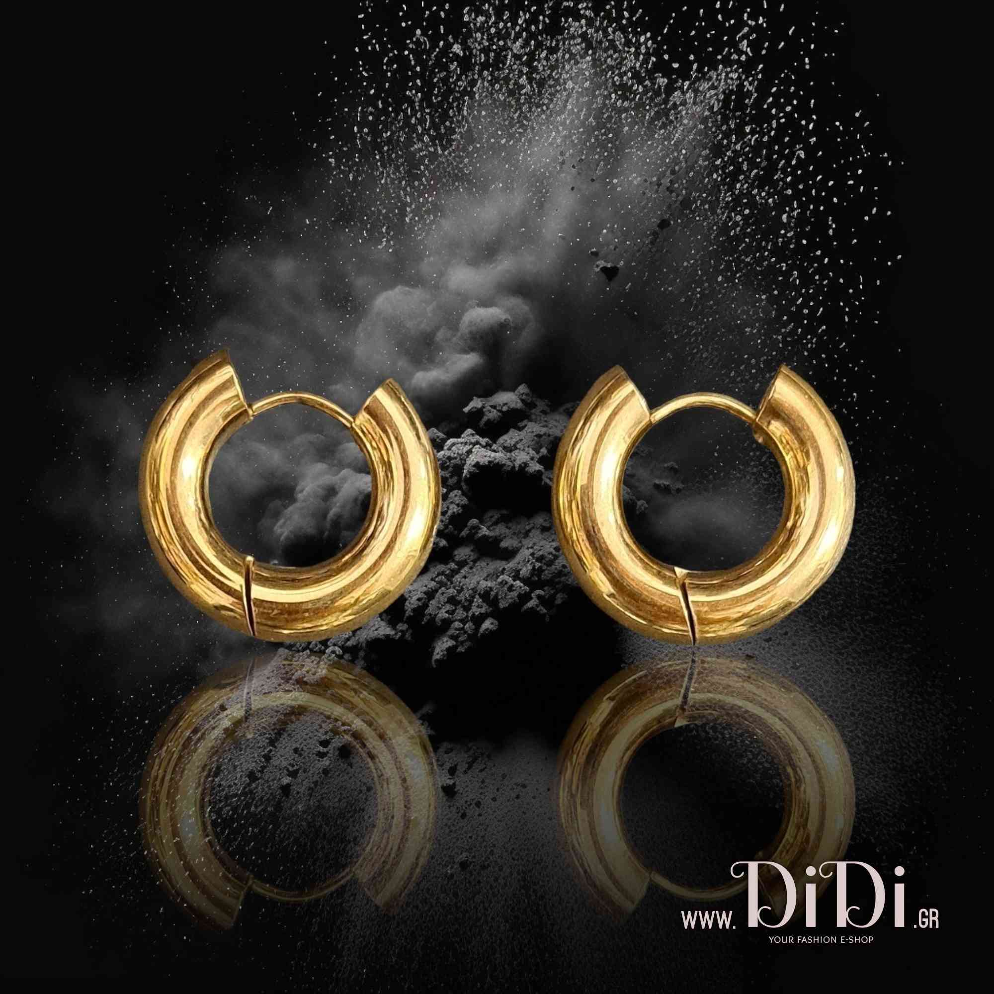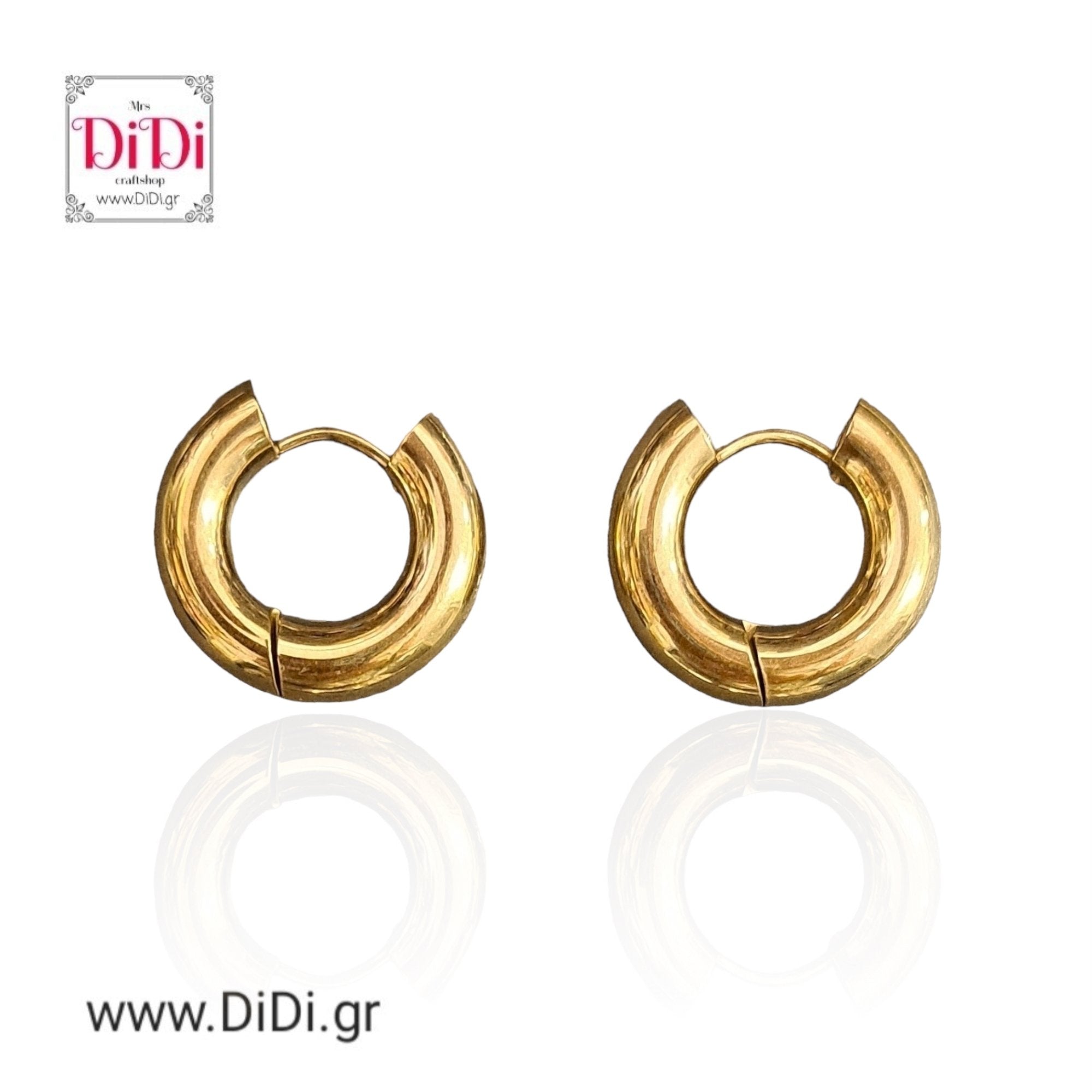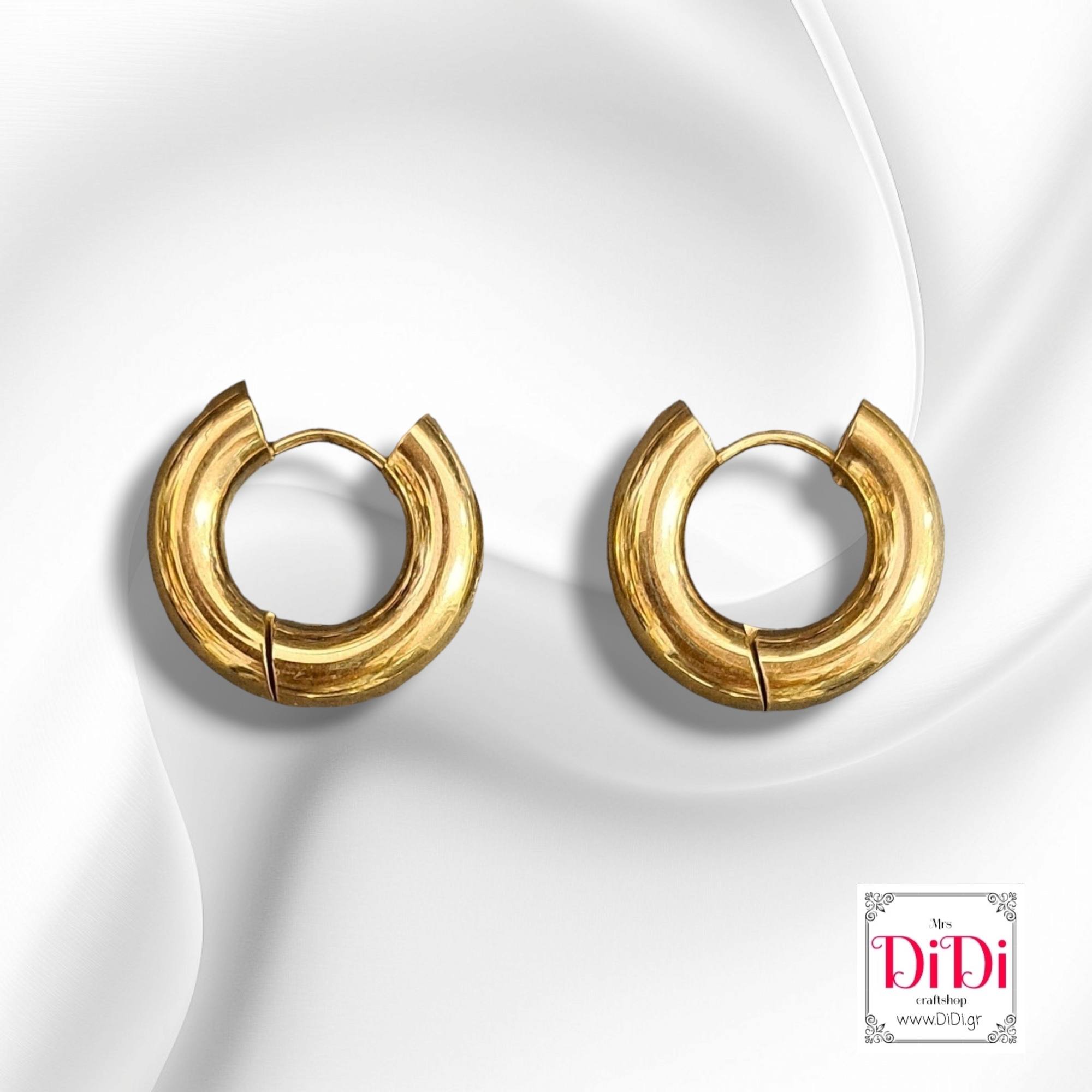 Σκουλαρίκια κρίκοι ατσάλινοι 2cm x 0,5cm, σε κίτρινο χρυσό