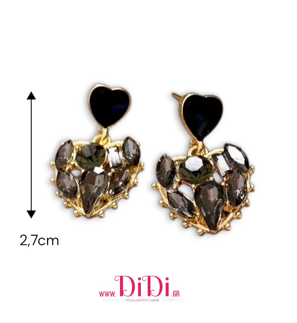 Σκουλαρίκια καρδιές με κρύσταλλα σε μαύρο & ανθρακί, 05122510