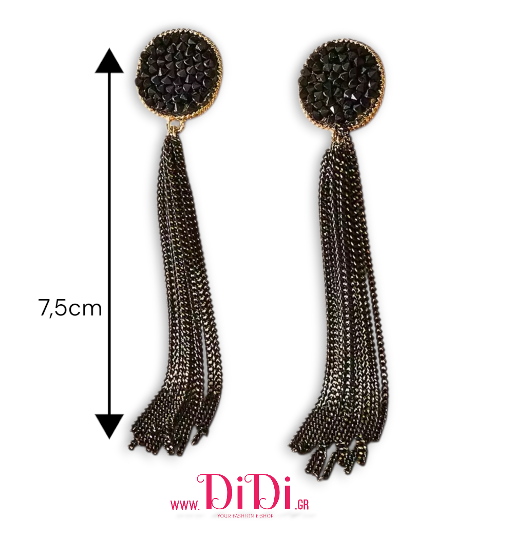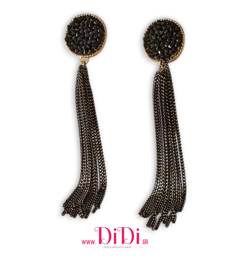 Σκουλαρίκια με κρύσταλλα σε μαύρο και αλυσίδες, 0512259
