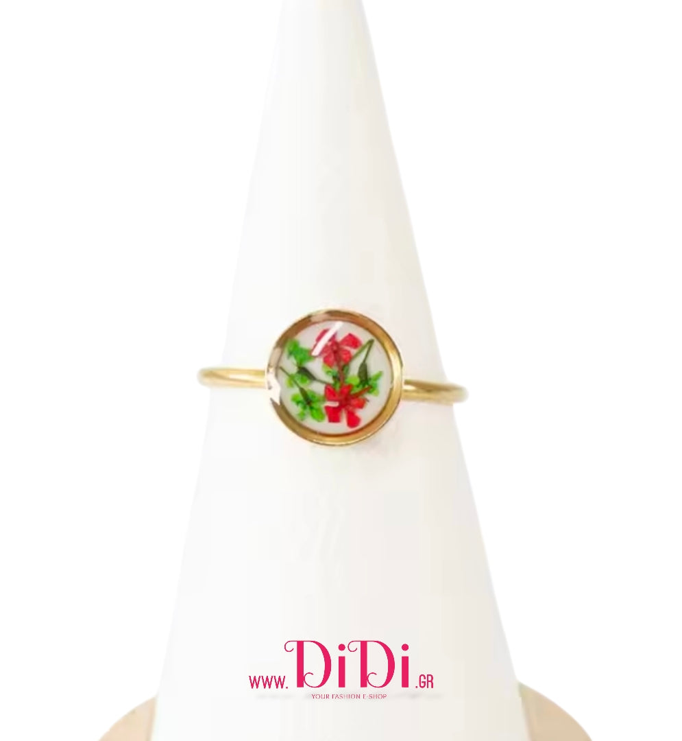 Δαχτυλίδι ατσάλινο φλοράλ με γυαλί, σε κίτρινο χρυσό, 16032612
