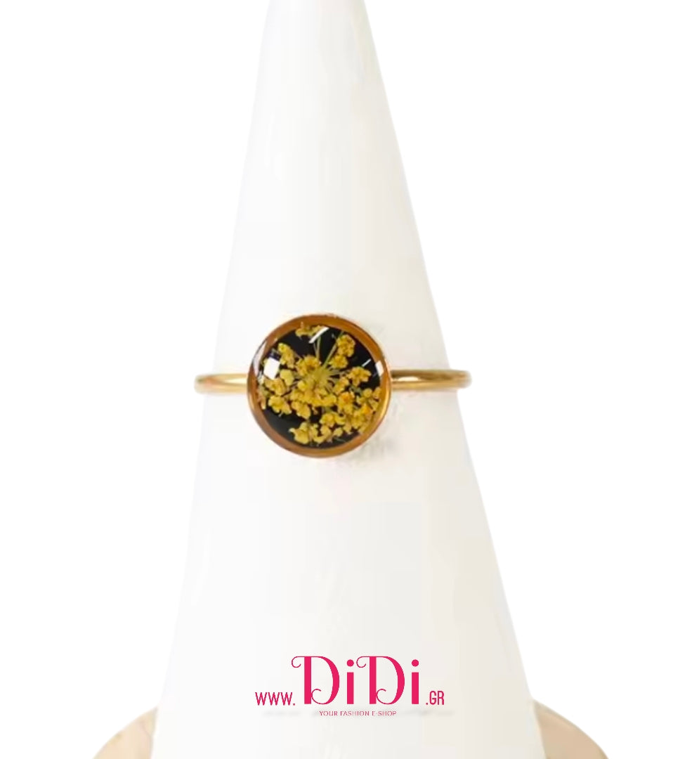 Δαχτυλίδι ατσάλινο φλοράλ με γυαλί, σε κίτρινο χρυσό, 1603263