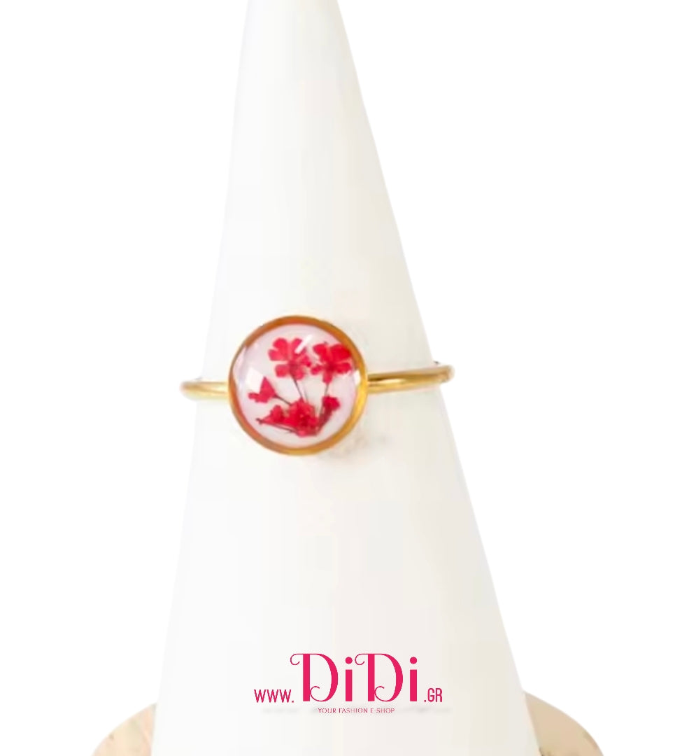Δαχτυλίδι ατσάλινο φλοράλ με γυαλί, σε κίτρινο χρυσό, 1603264