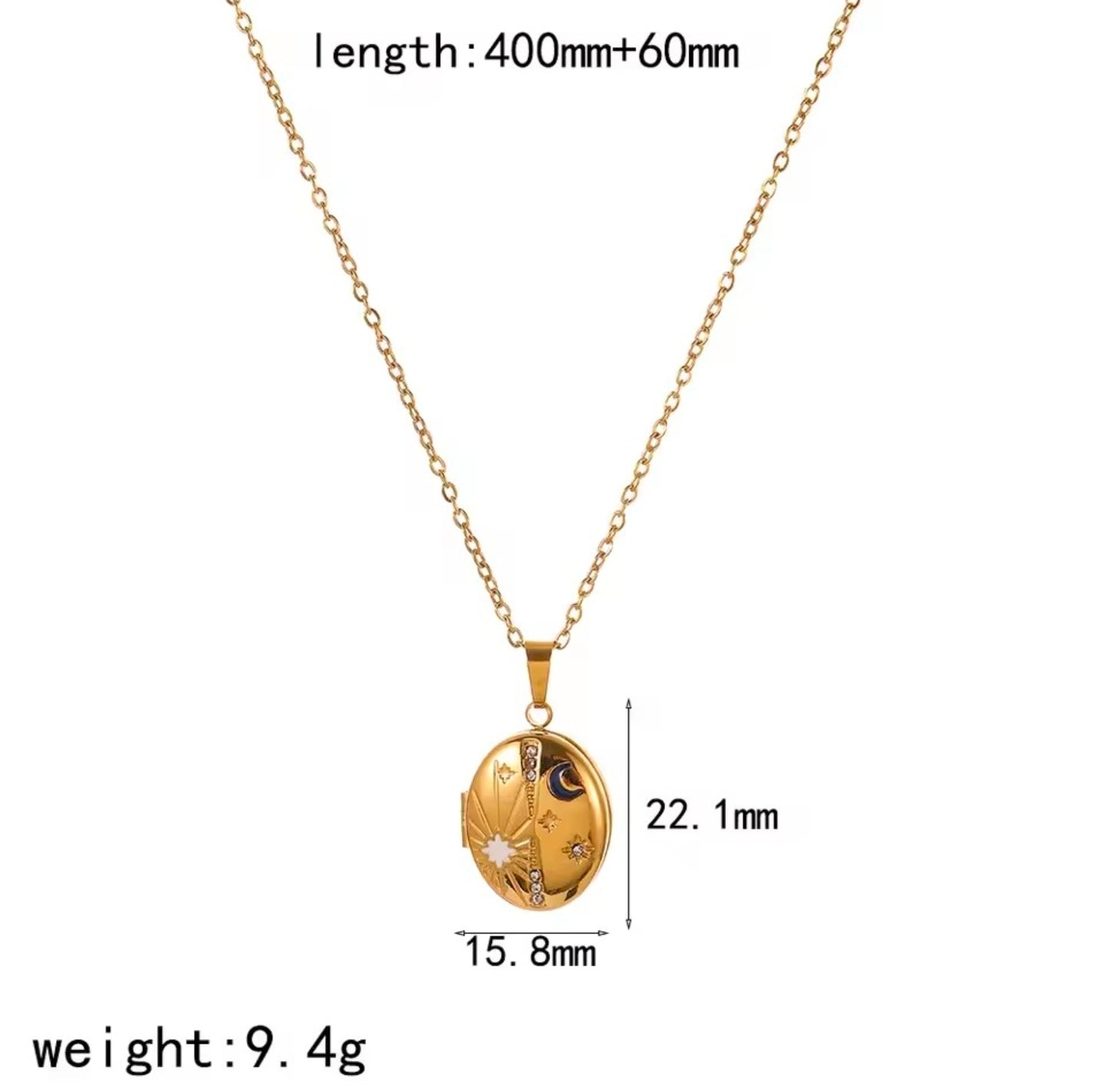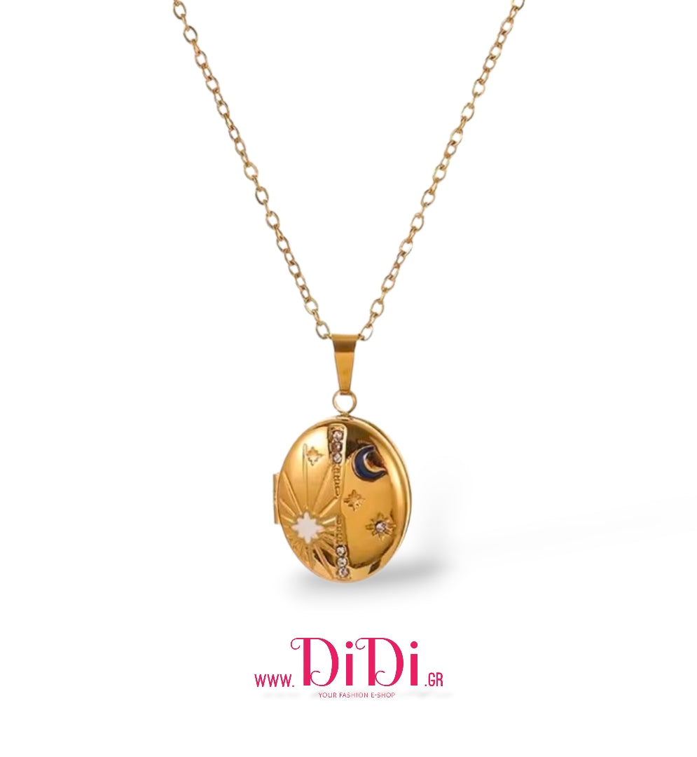 Κολιέ ατσάλινο μενταγιόν ανοιγόμενο οβάλ με ζιργκόν, κίτρινο χρυσό, 28042618