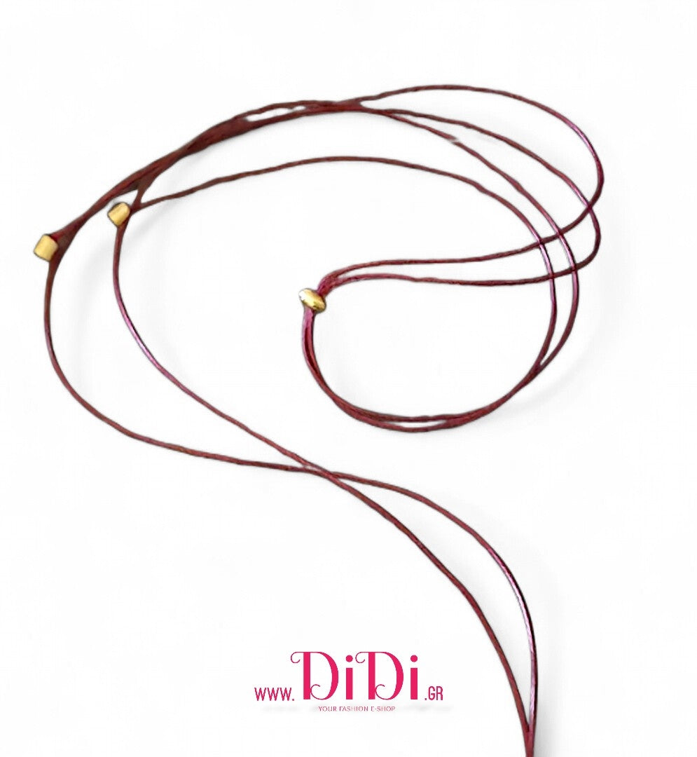 Κολιέ σε υψηλής ποιότητας κορδόνι με κούμπωμα αυξωμείωσης και δύο μεταλλικά άκρα.