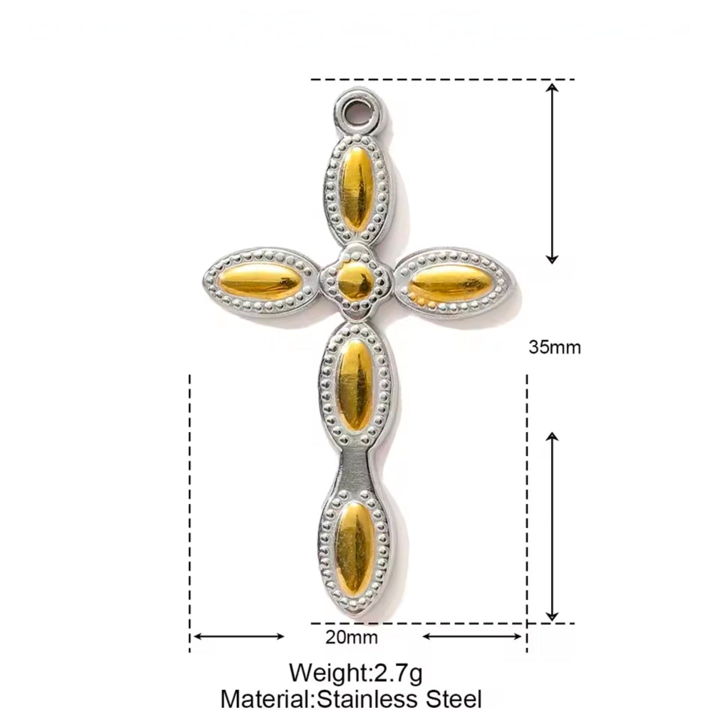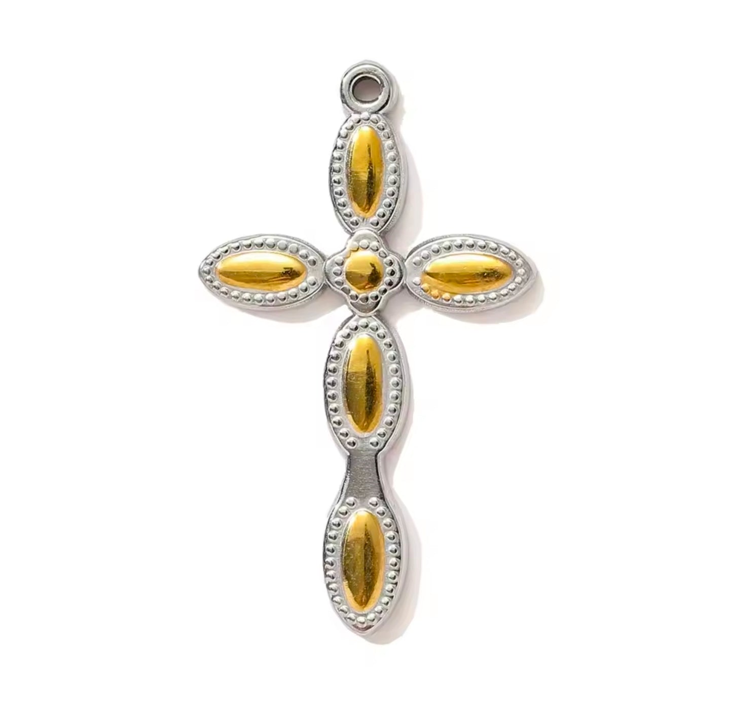 Κολιέ σταυρός ατσάλινος με σχέδιο, σε ασημί - κίτρινο χρυσό, 0802266