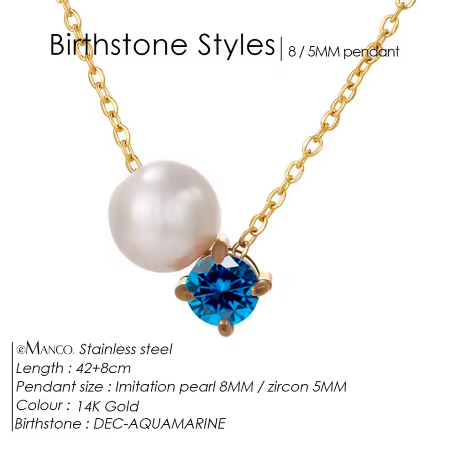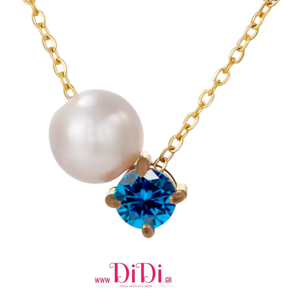 Κολιέ ατσάλινο, πετρόλ ζιργκόν και ακριλική πέρλα, σε κίτρινο χρυσό, 0503265