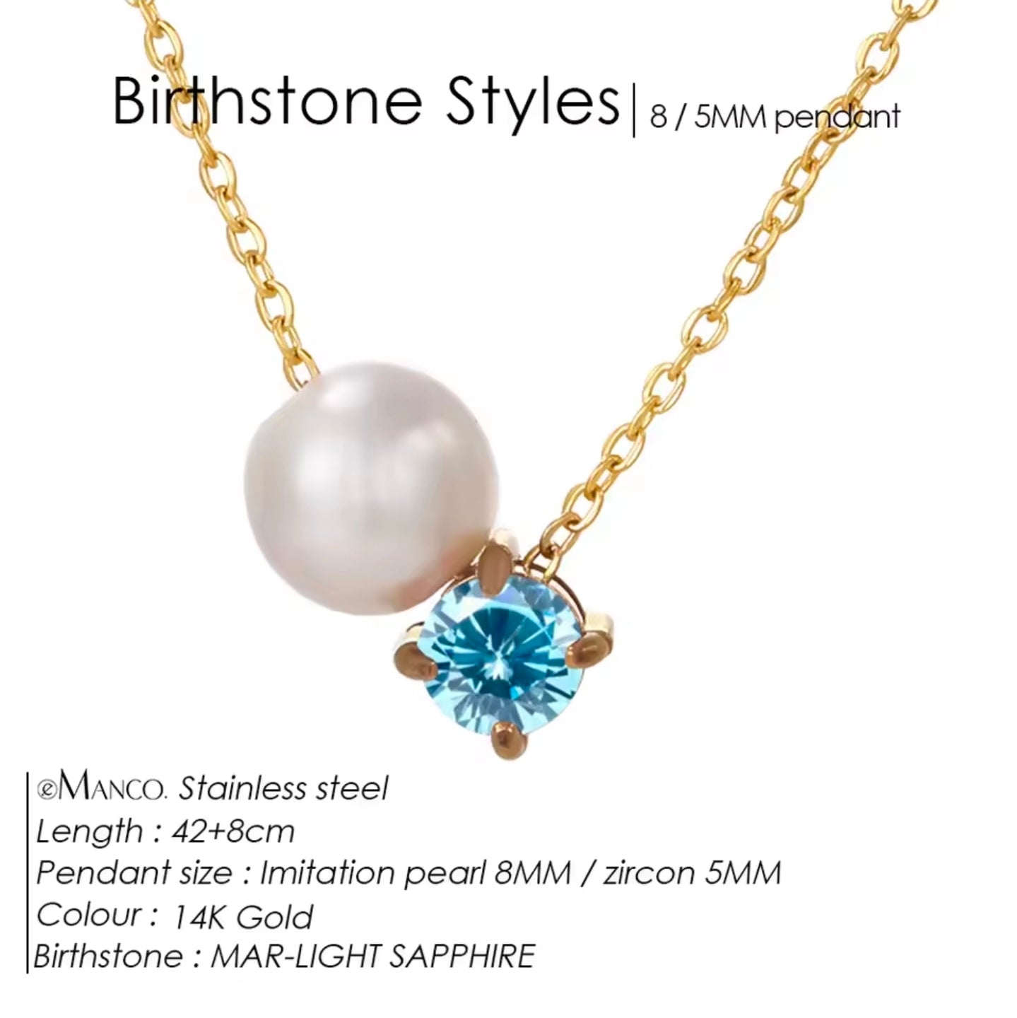 Κολιέ ατσάλινο, τιρκουάζ ζιργκόν και ακριλική πέρλα, σε κίτρινο χρυσό, 0503263