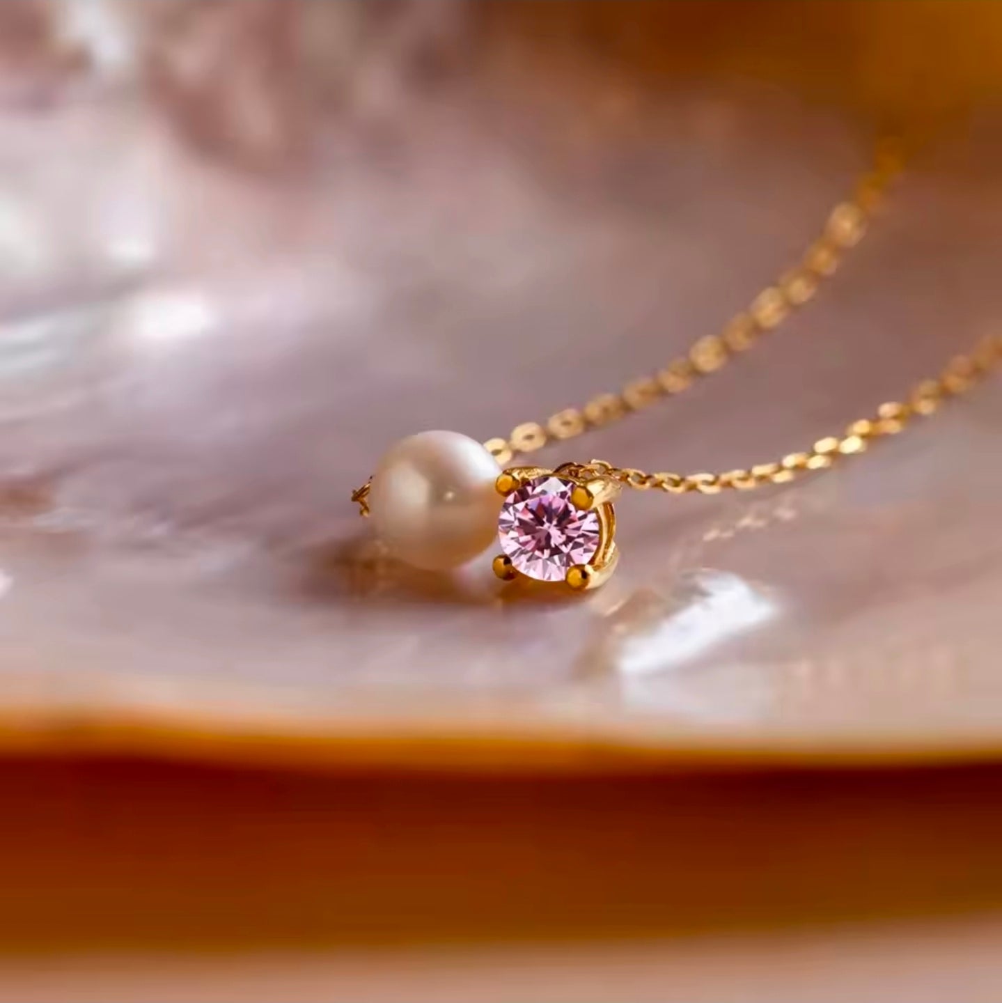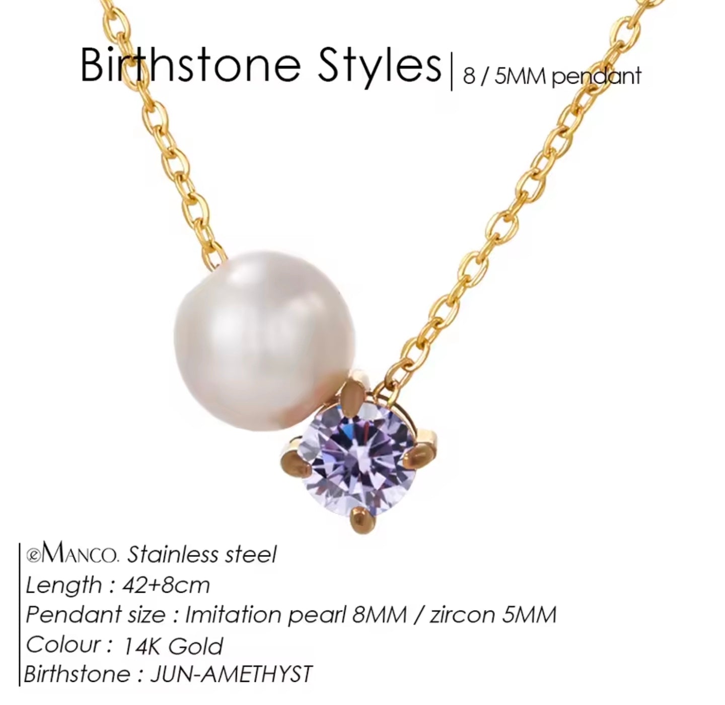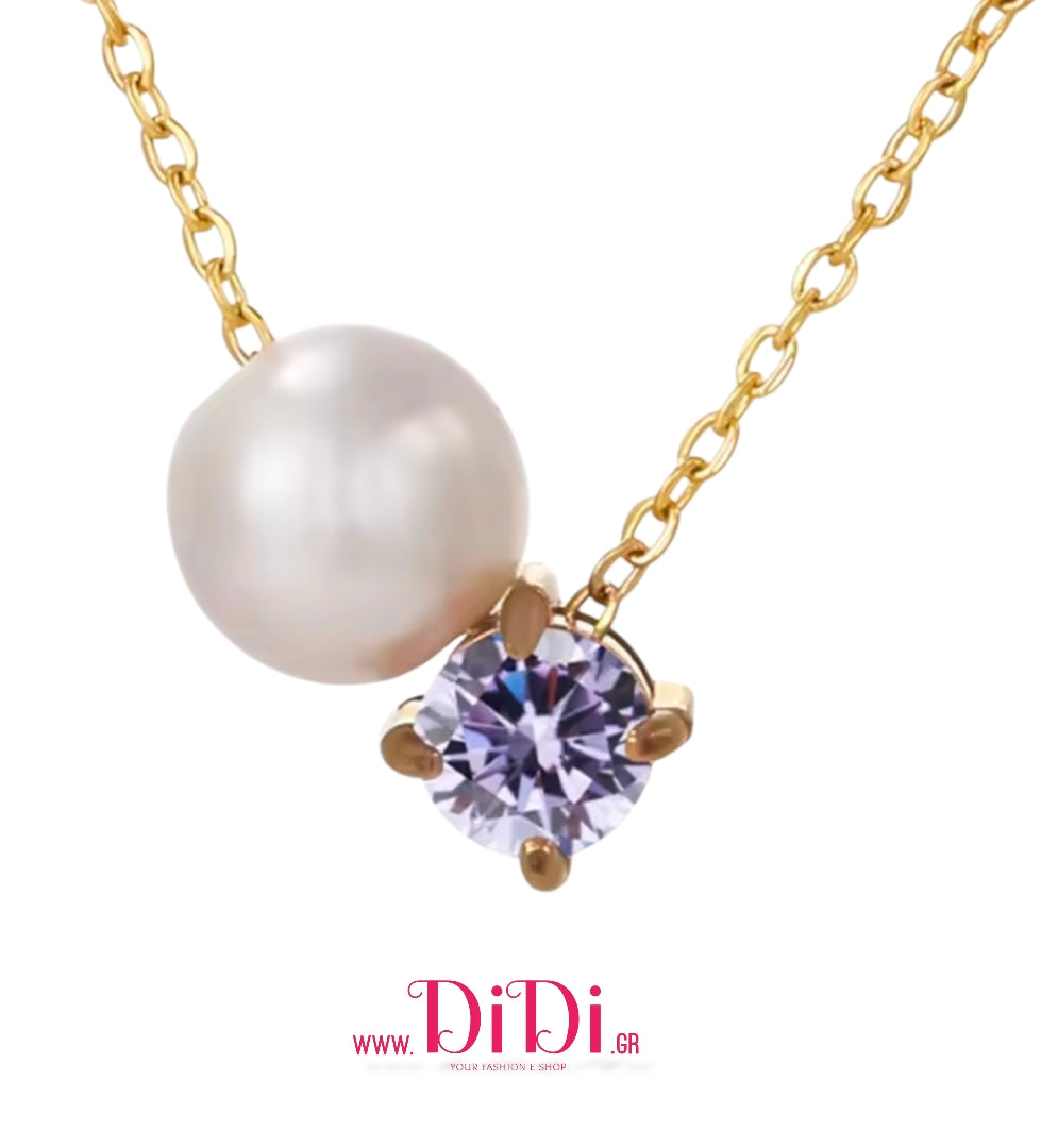Κολιέ ατσάλινο, λιλά ζιργκόν και ακριλική πέρλα, σε κίτρινο χρυσό, 0503264