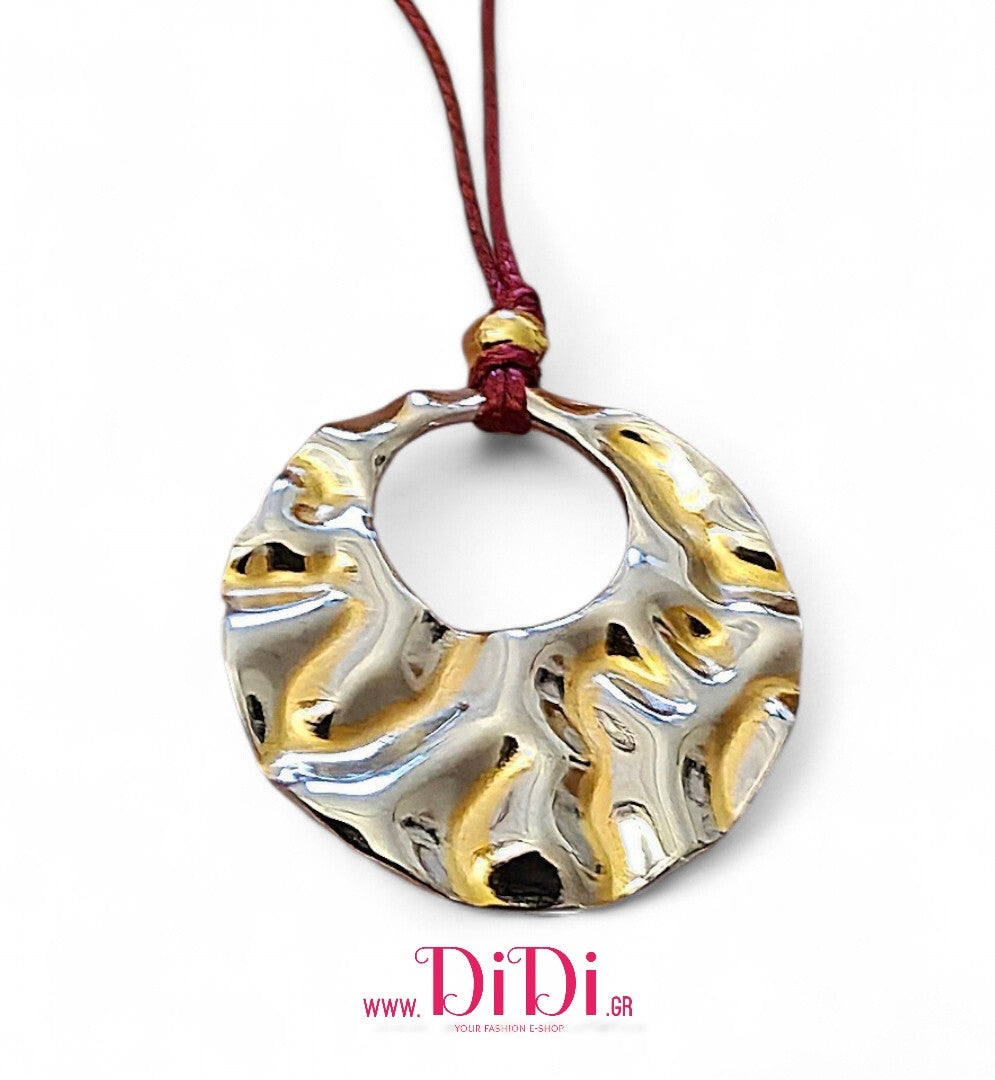 Κολιέ σε υψηλής ποιότητας κορδόνι με κούμπωμα αυξωμείωσης και δύο μεταλλικά άκρα.