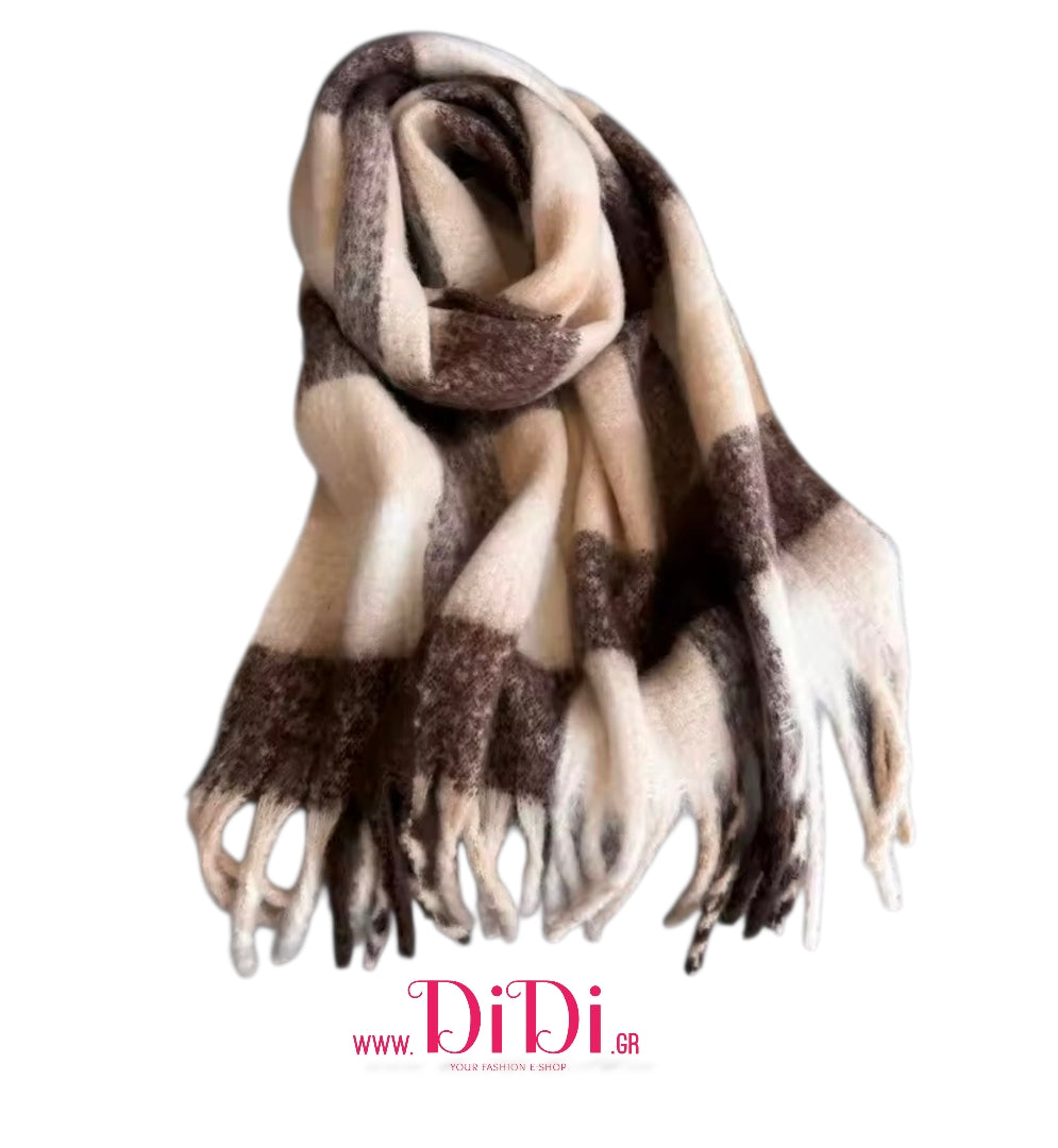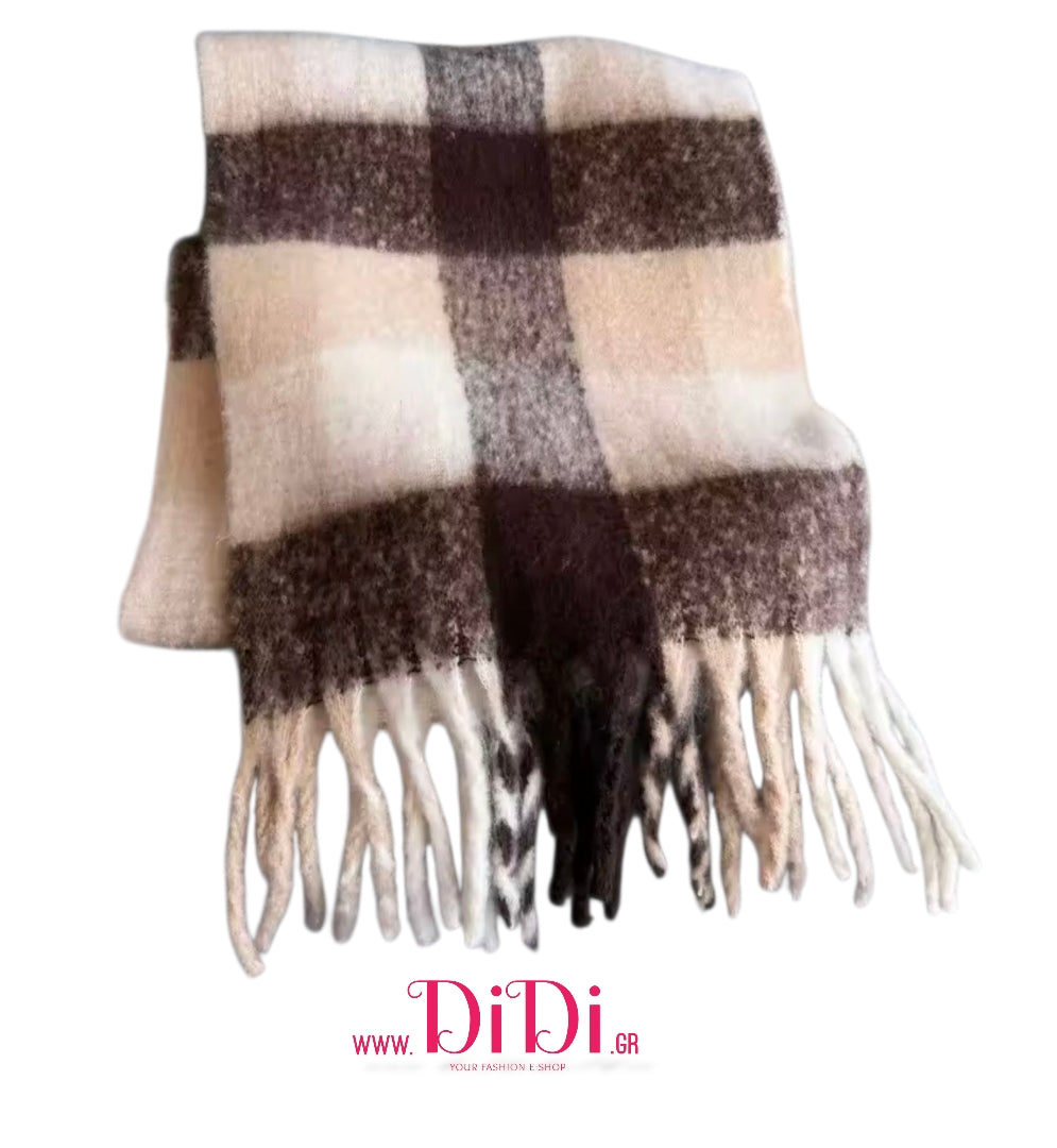Κουβέρτα - κασκόλ χοντρή καρό καφέ, 20112513