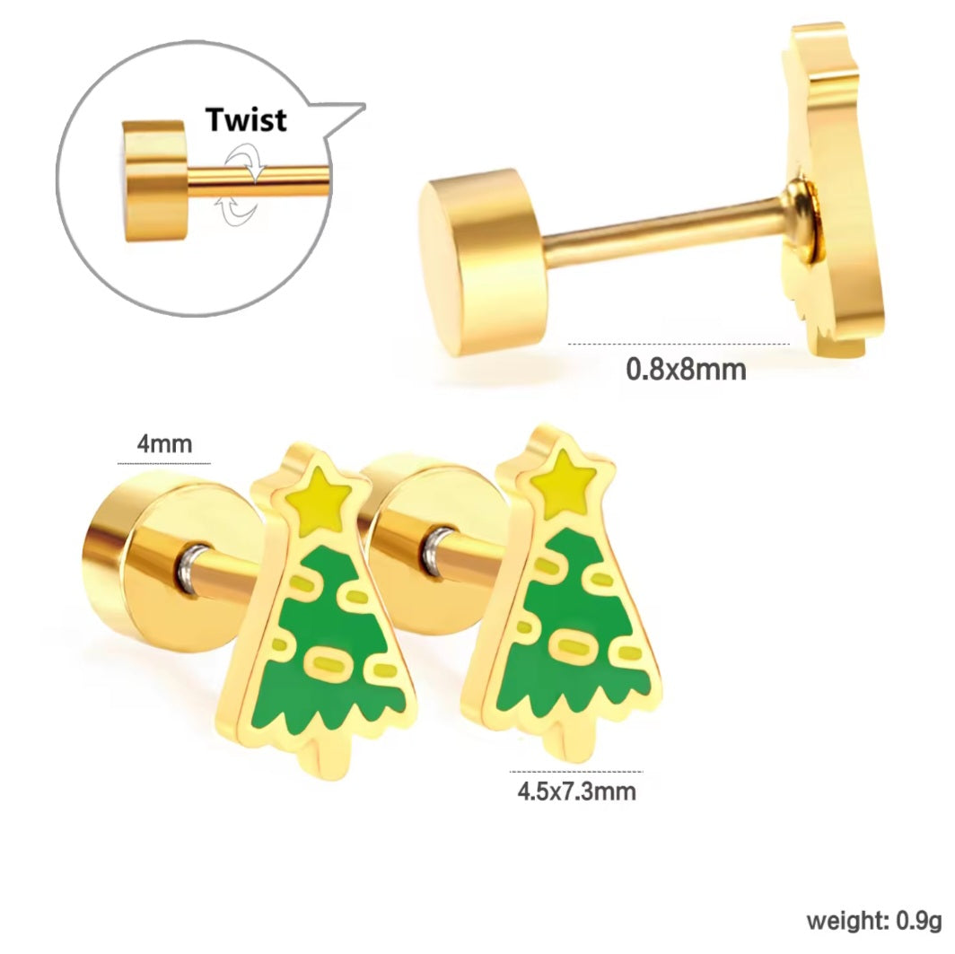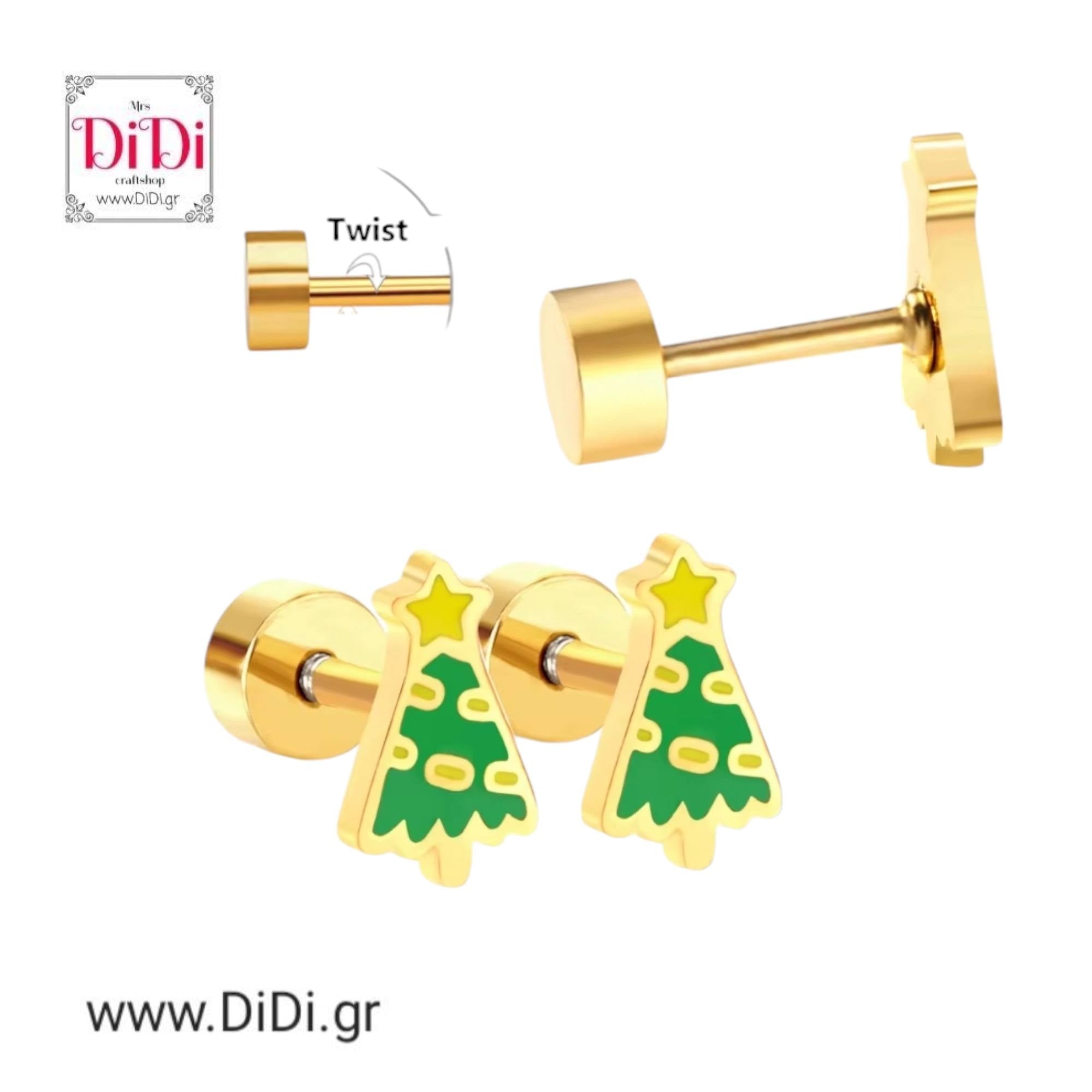 Σκουλαρίκια ατσάλινα, Χριστ. δέντρο με σμάλτο, σε κίτρινο χρυσό, 1312242