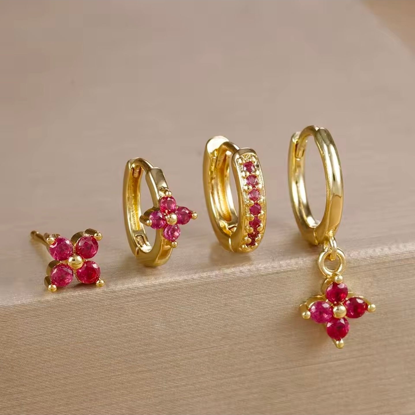 Σκουλαρίκια ατσάλινα σετ 4άδα με γκρενά κρύσταλλο, σε κίτρινο χρυσό, 2110257