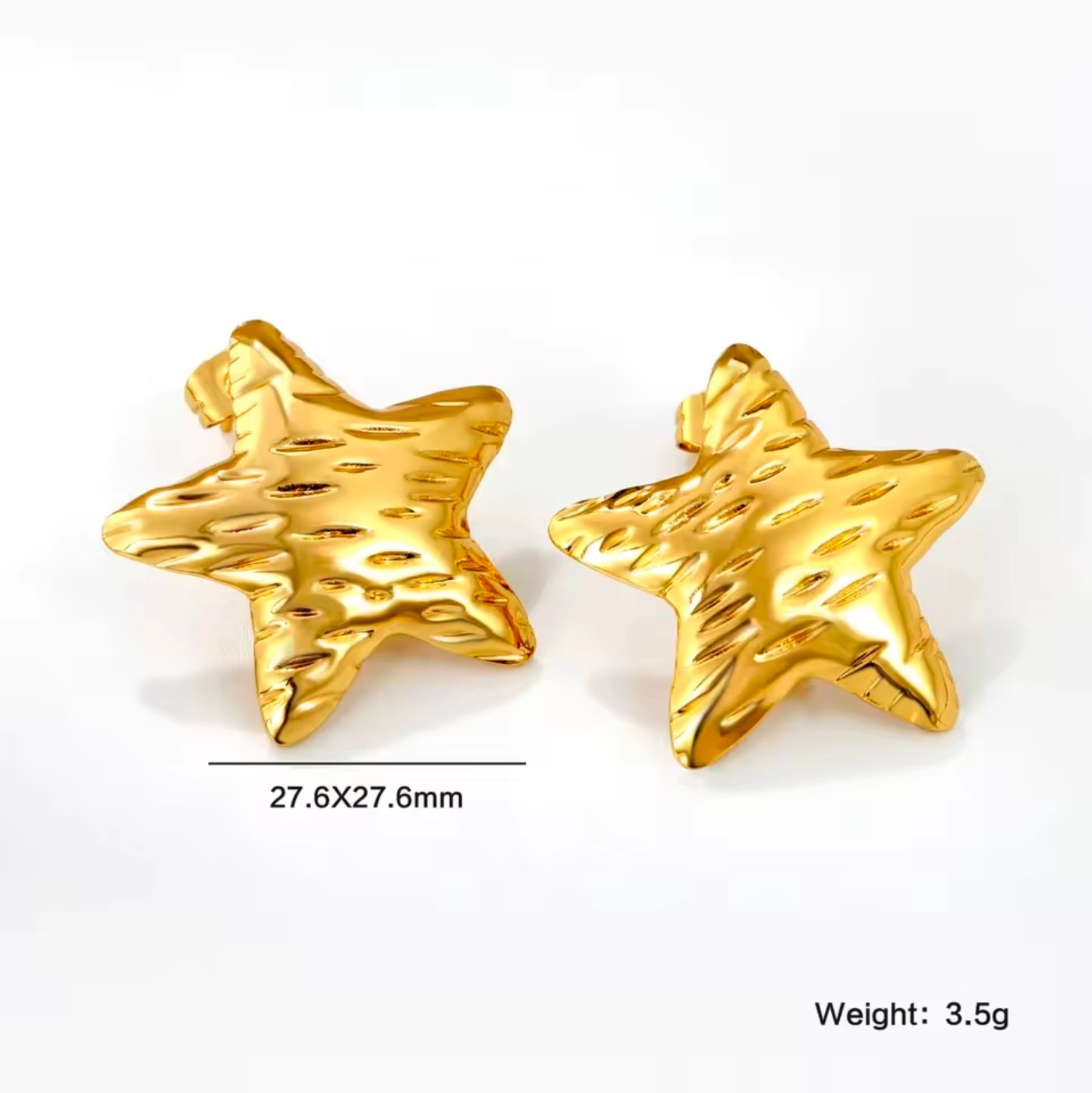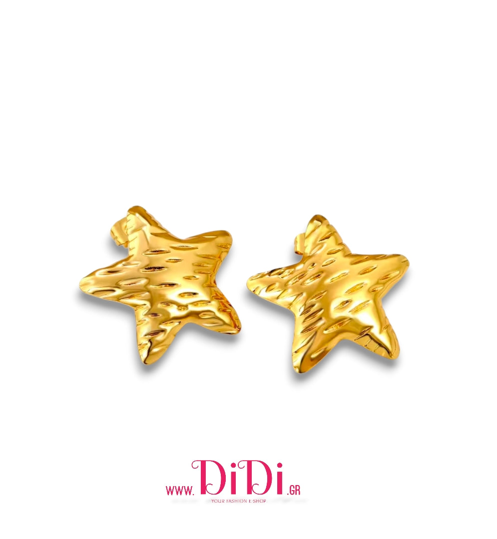 Ατσάλινα σκουλαρίκια καρφάκι αστέρι, κίτρινο χρυσό, 0111256