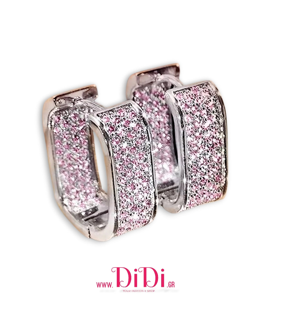Σκουλαρίκια κρίκοι ατσάλινοι 1,6cm οβάλ με καρφωτά ροζ στρας, ασημί, 2910258SR