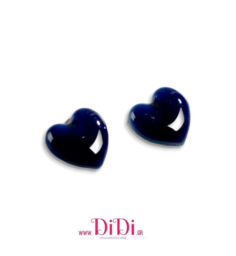 Σκουλαρίκια ατσάλινα καρφάκι, καρδιές ρητίνης & κεραμικό, μπλε, 21112522