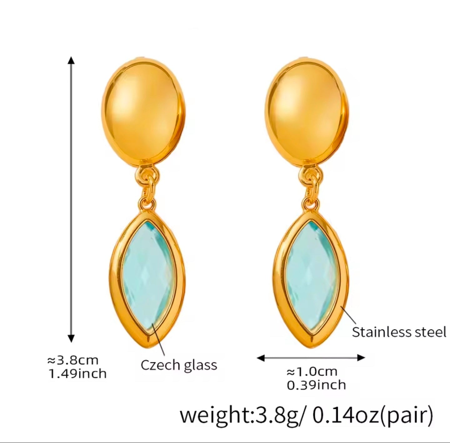 Σκουλαρίκια ατσάλινα κρεμαστά, κρύσταλλο Τσεχίας γαλαζιο, 26022611