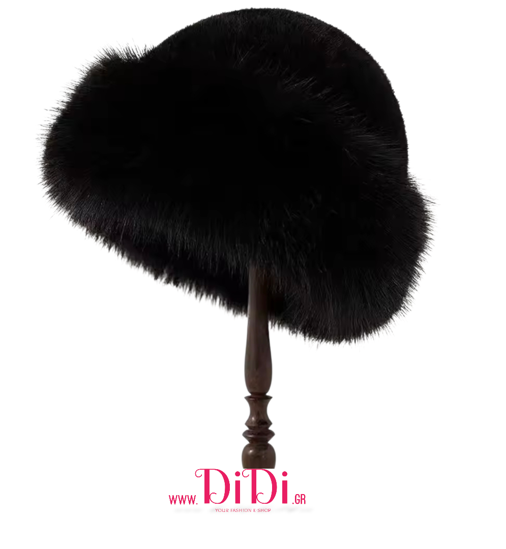 Γυναικείο καπέλο γούνινο, μονόχρωμο, φοριέται και απο τις 2 πλευρές.