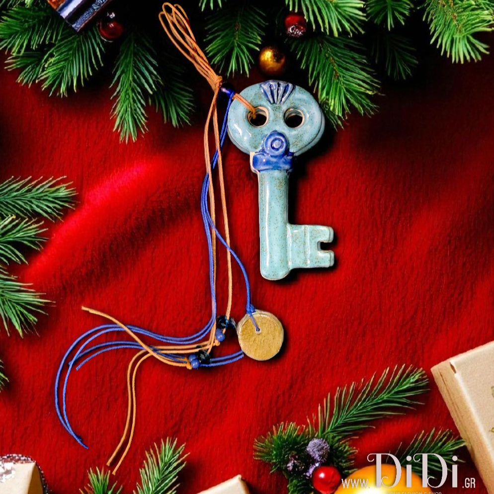Χριστουγεννιάτικο γούρι μπλε κλειδί, κεραμικό & κρεμαστό, 2810258