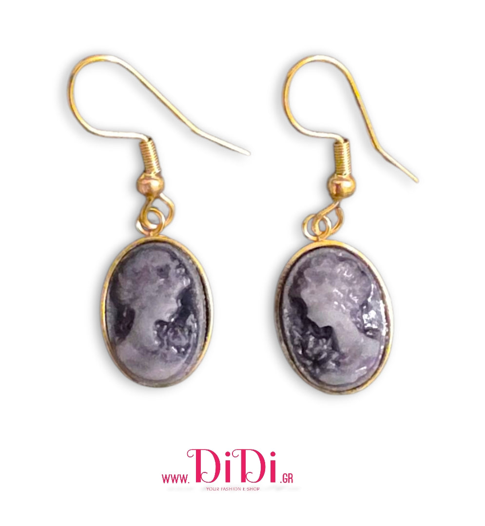 Σκουλαρίκια ατσάλινα καμέο μοβ, 18mm x 13mm, σε κίτρινο χρυσό, 2710253