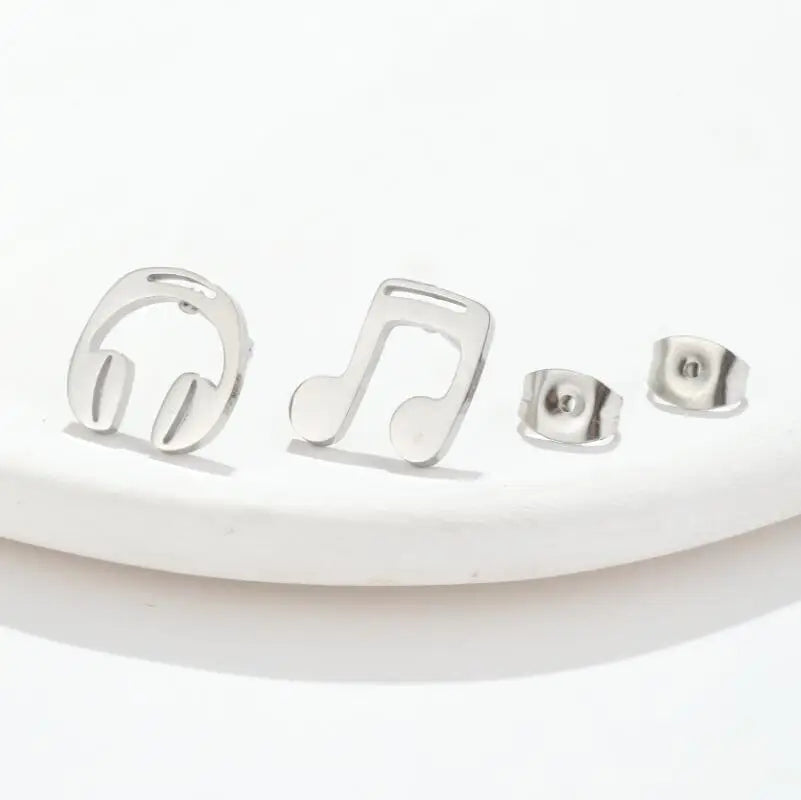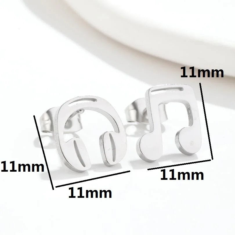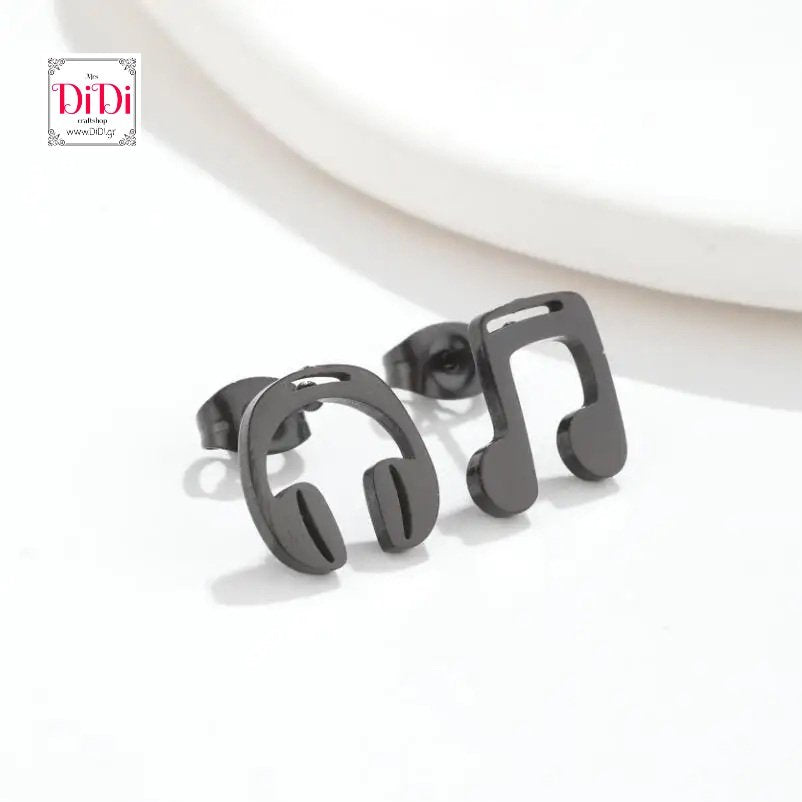 Ατσάλινα σκουλαρίκια ακουστικά - νότα, μαύρο 2302241