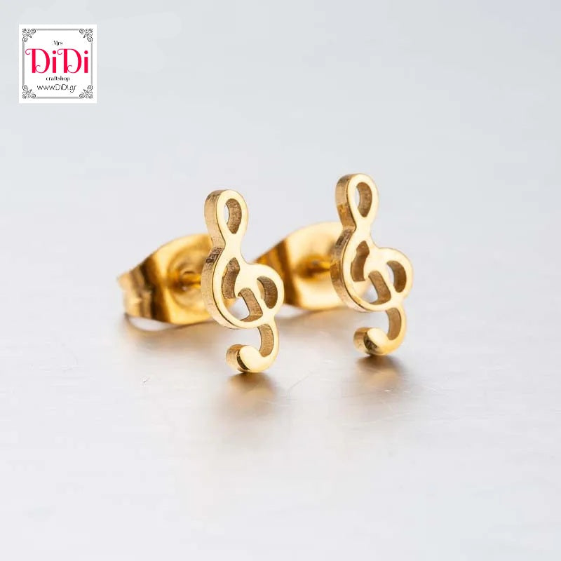 Ατσάλινα σκουλαρίκια νότες, χρυσό 18042422