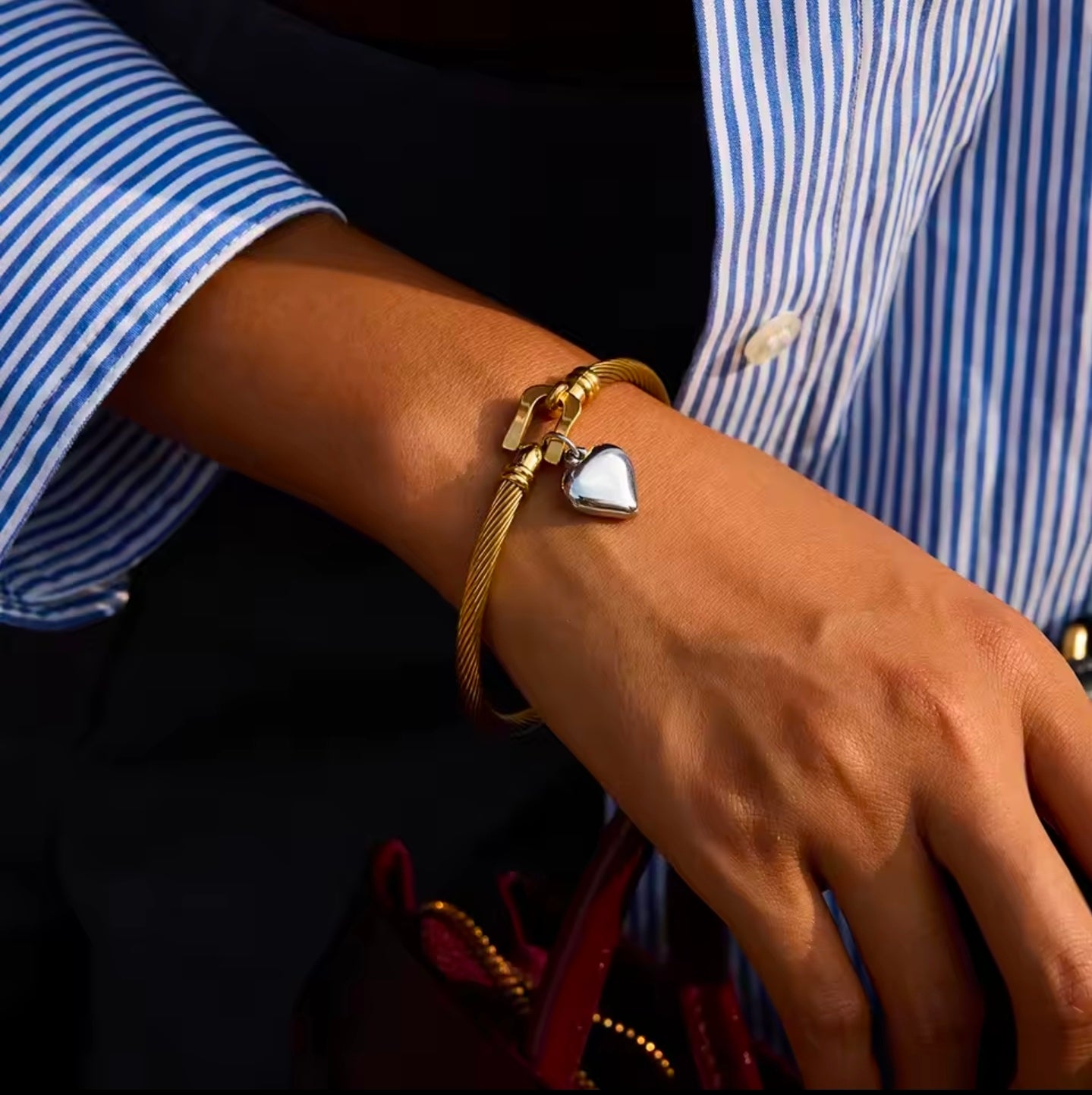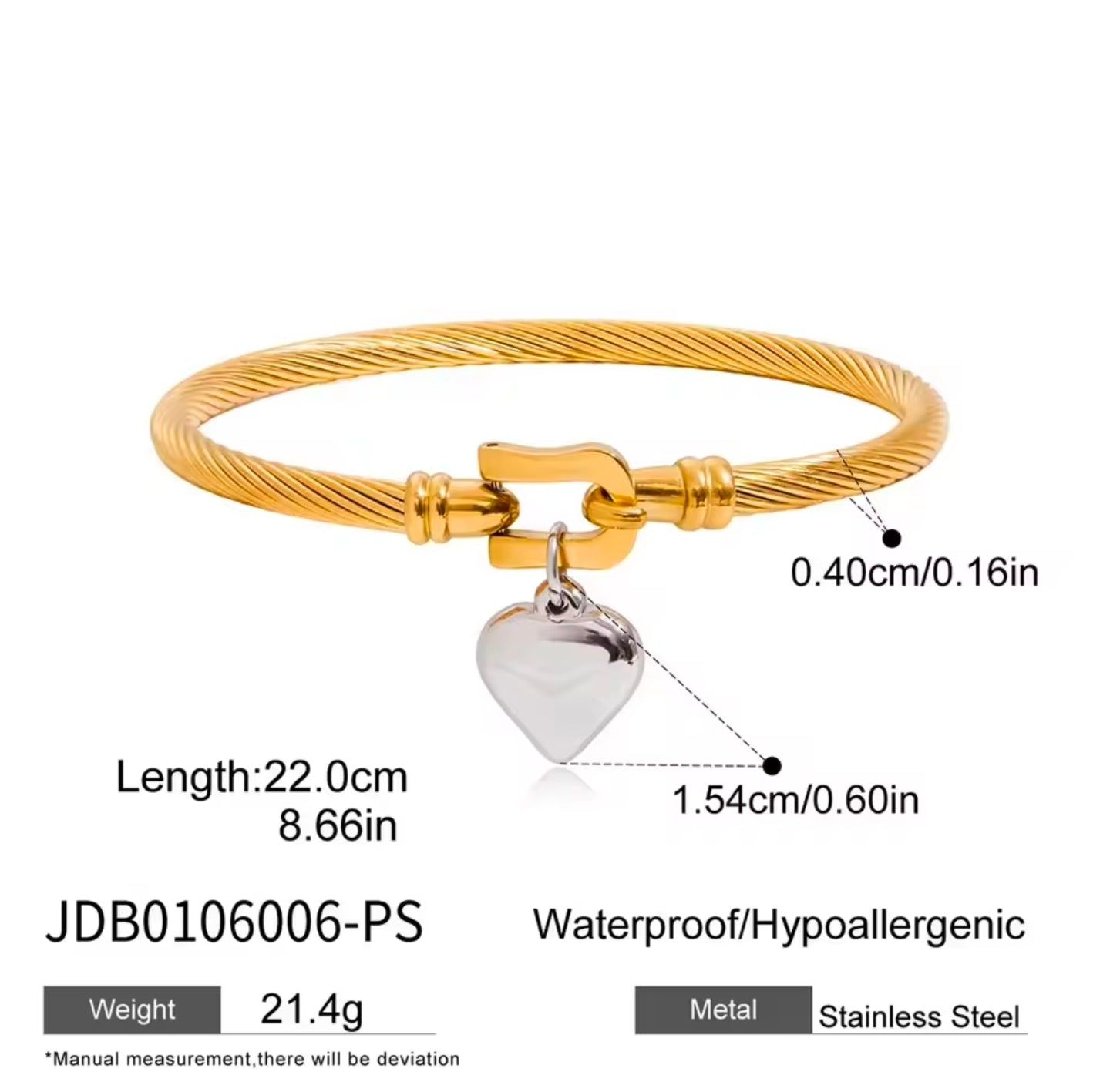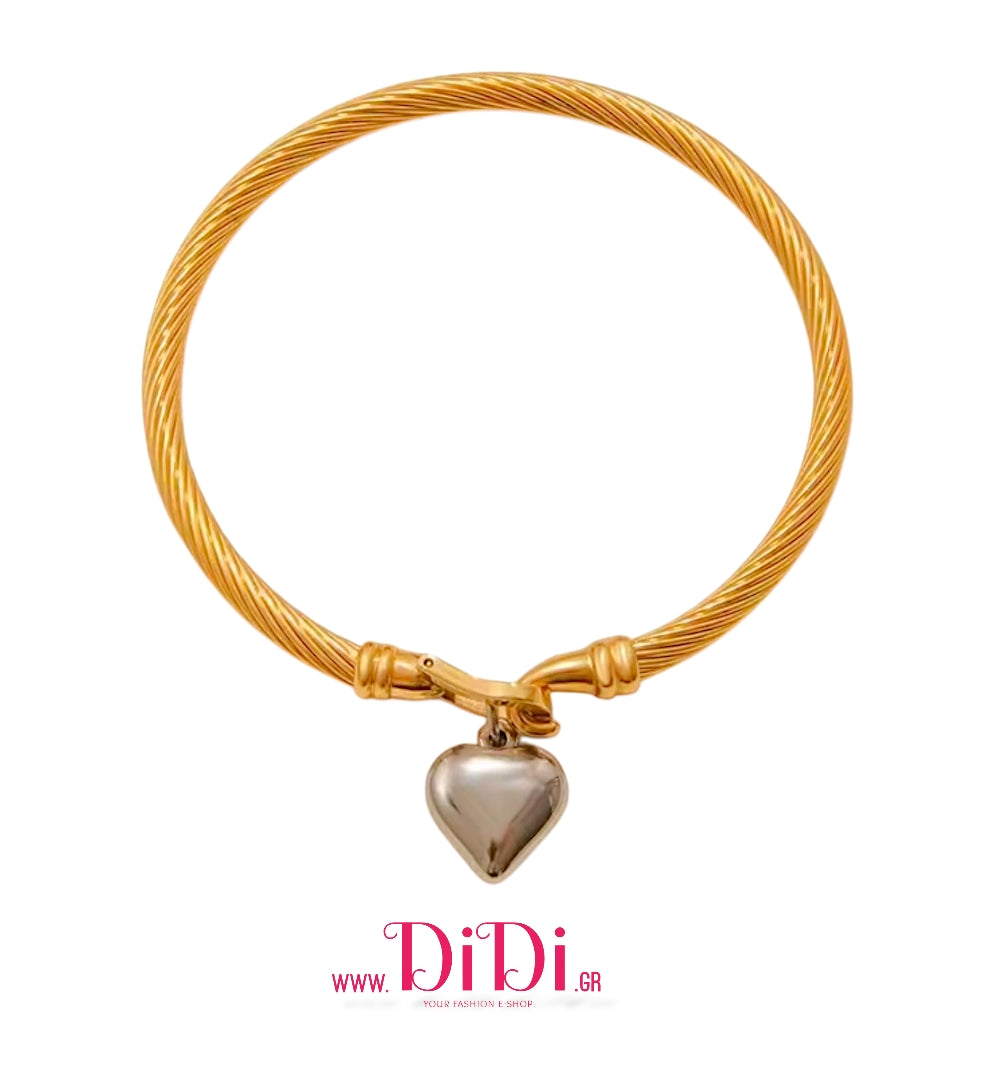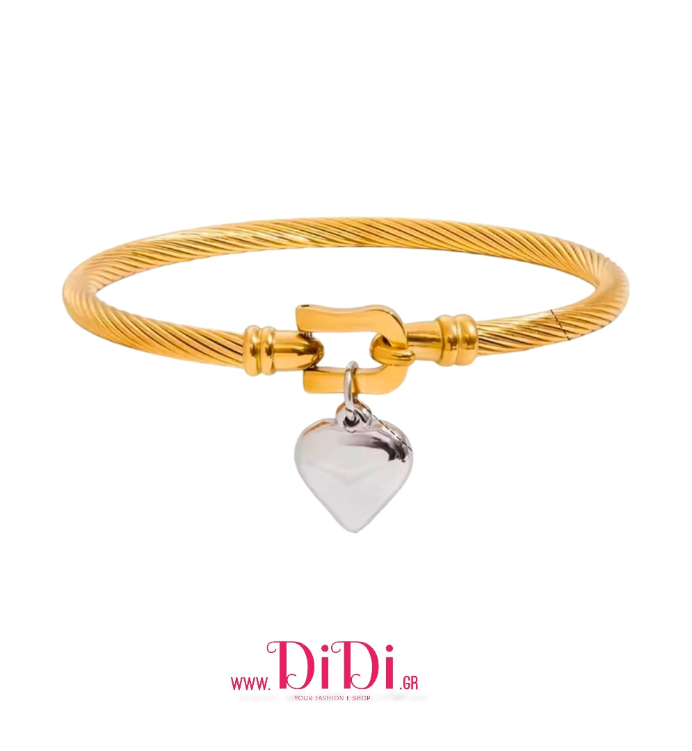 Ατσάλινο βραχιόλι σταθερή βέργα οβάλ με καρδιά, σε κίτρινο χρυσό, 20102517