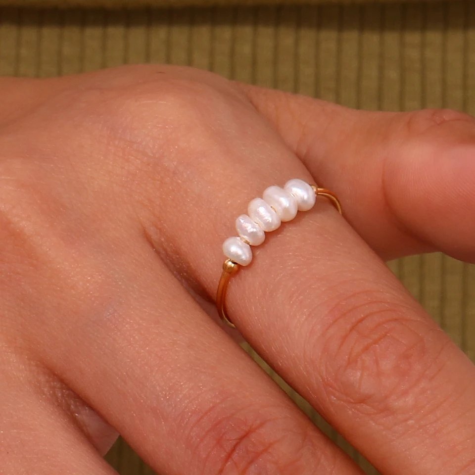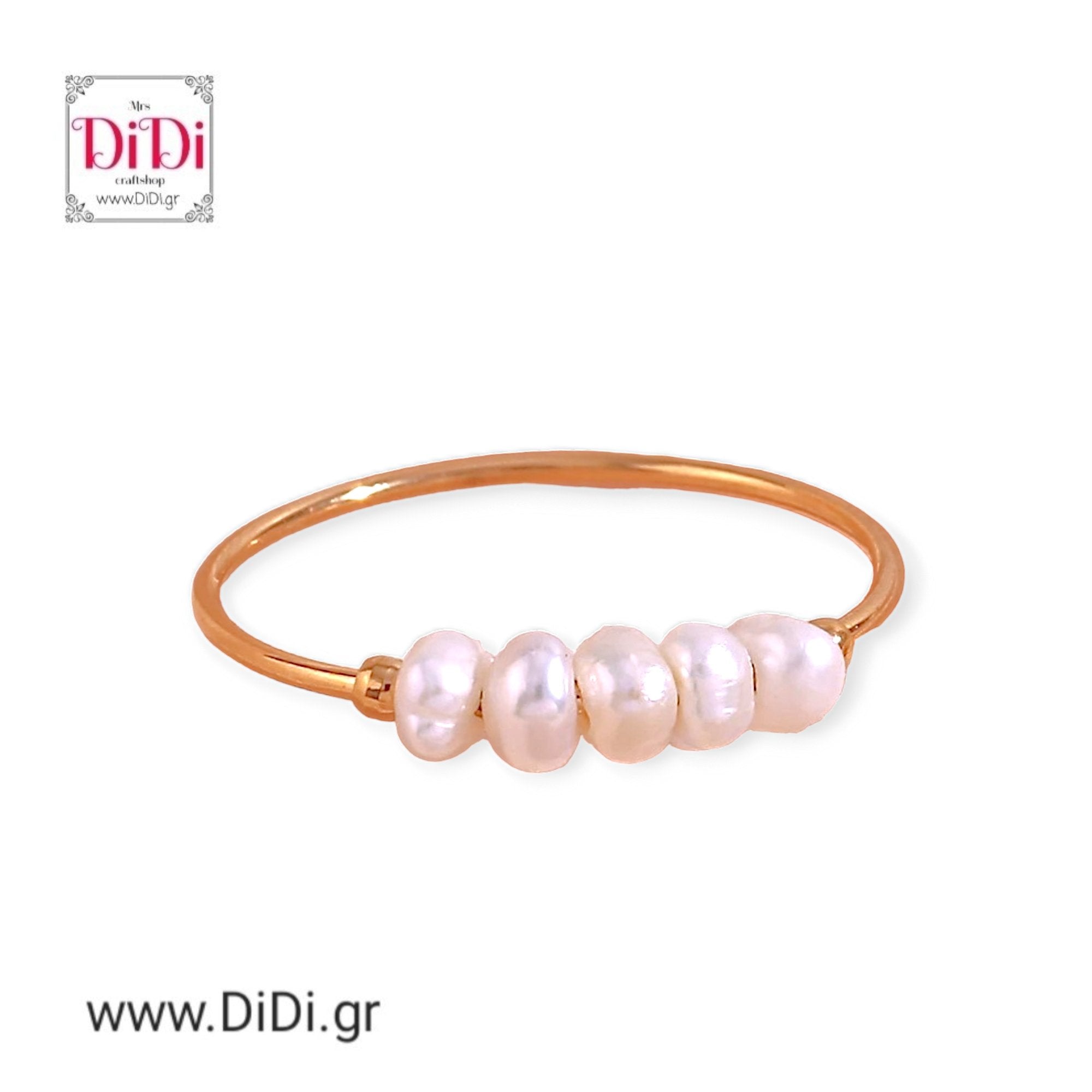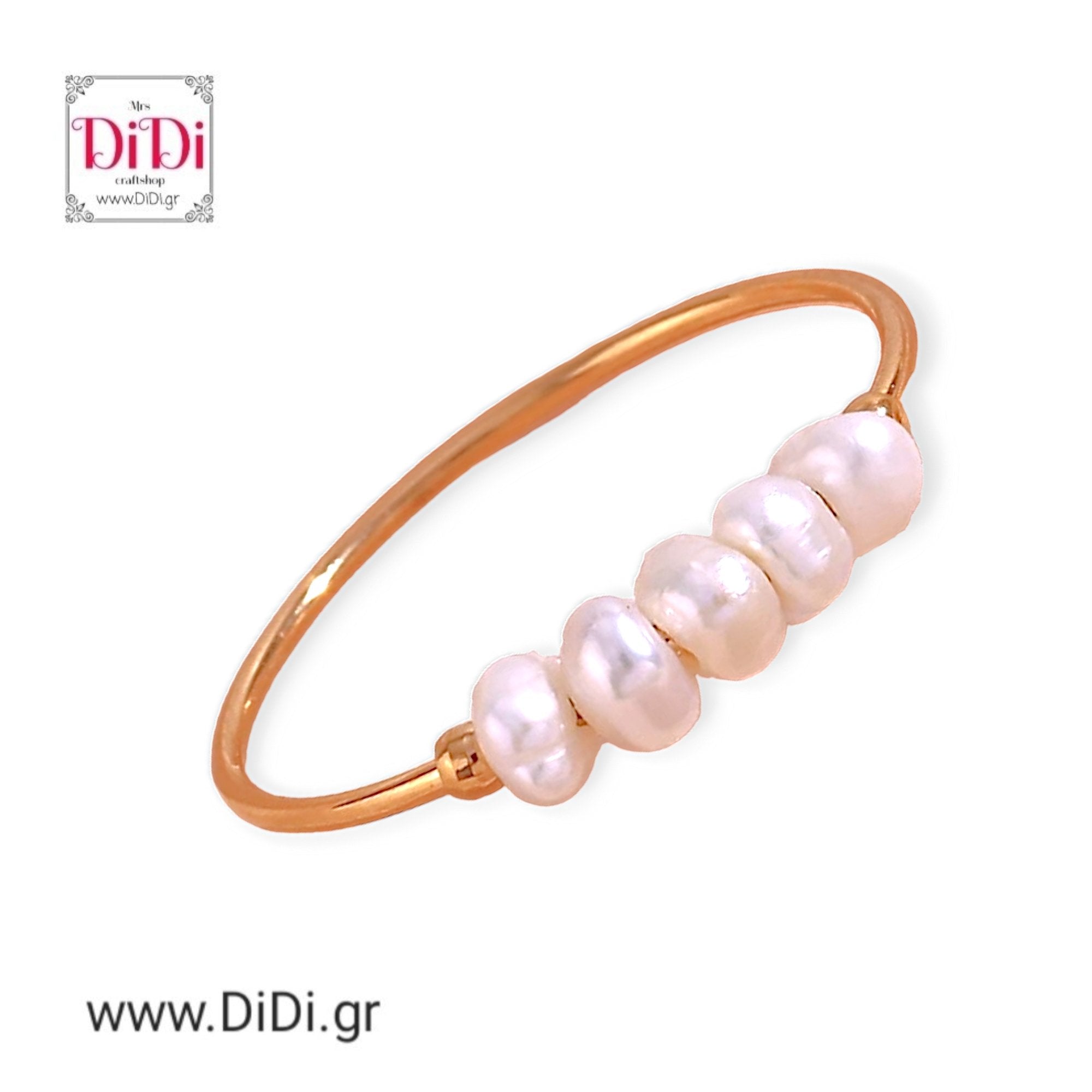 Ατσάλινο δαχτυλίδι micro βέργα με μαργαριτάρια, σε κίτρινο χρυσό 30052423