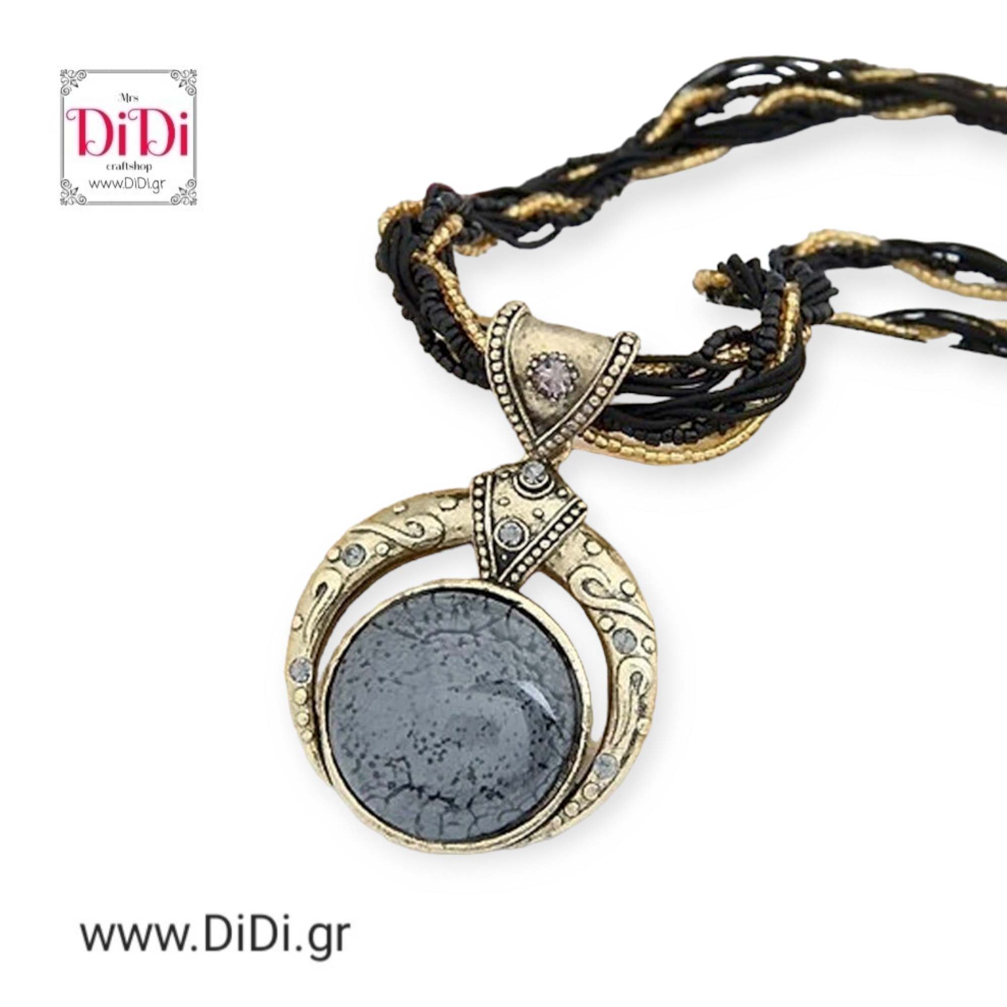 Κολιέ κοντό με χάντρες και στρογγυλό στοιχείο, μαύρο, 2207242